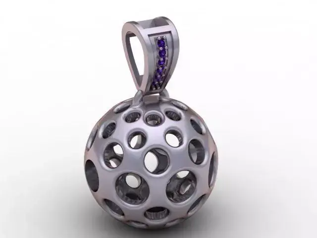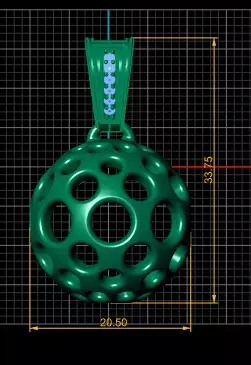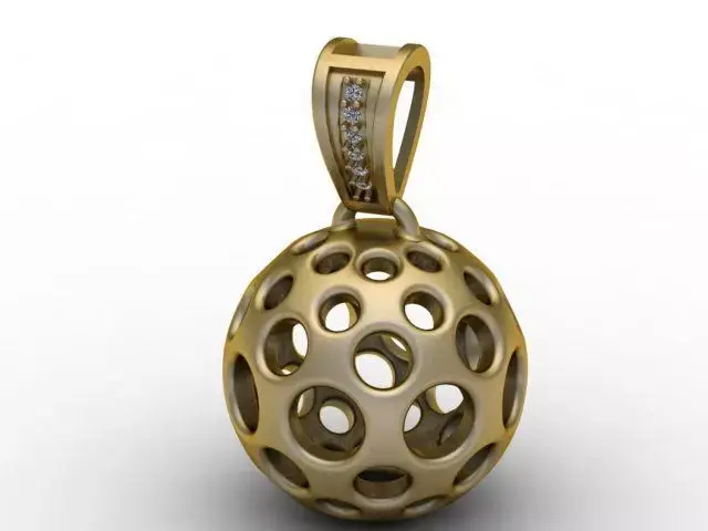 A modern 3D printable hollow sphere pendant featuring a geometric multi-hole pattern and a diamond-accented bail. Lightweight, stylish, and perfect for gold, silver, or resin jewelry production.