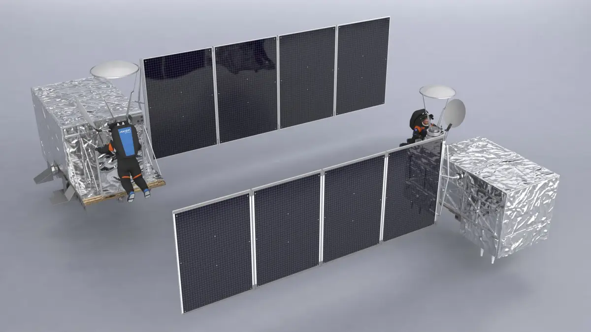 Geostationary Satellite with Astronaut is a three-dimensional model of a satellite featuring an astronaut figure performing a spacewalk, typically representing maintenance or exploration tasks.