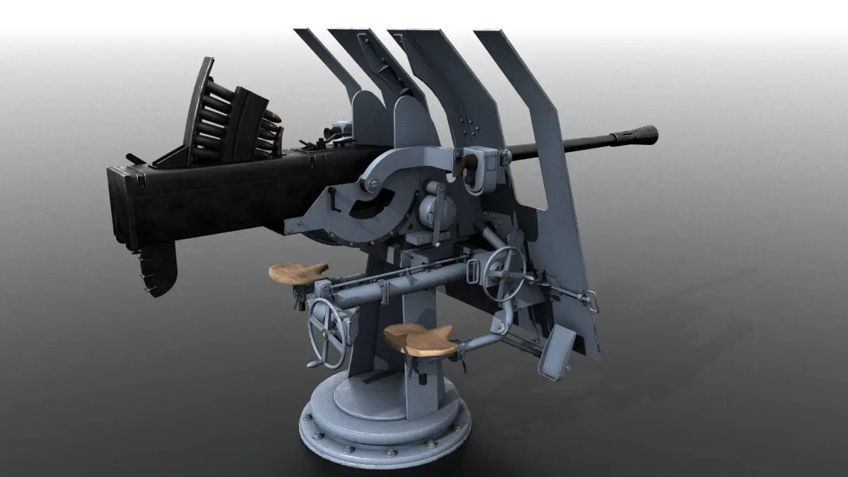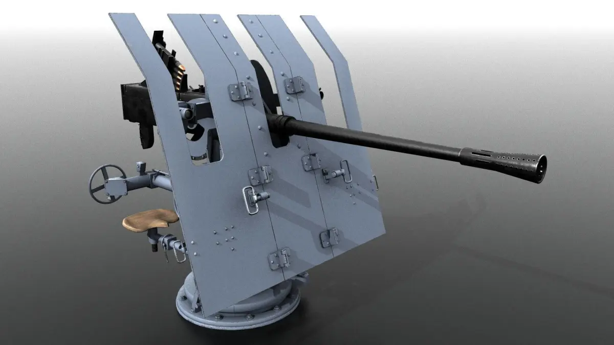 Flak 42 was an anti-aircraft cannon produced by Nazi Germany that saw widespread service in the Second World War. The cannon was fully automatic and effective against aircraft flying at altitudes up to 4,200 m. This model was installed onboard the Schnellboots, the german anti submarine motor boats