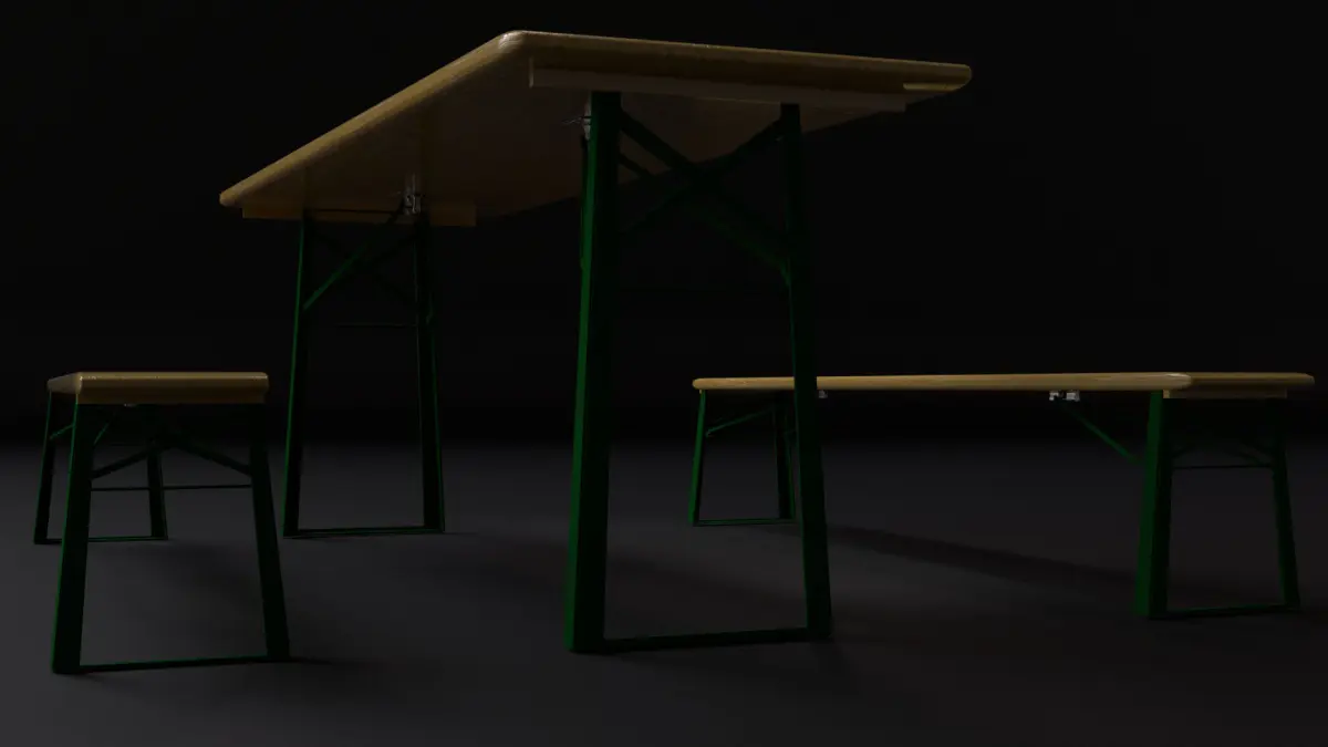 This German beer table is often used at parties in Germany and every pub in Berlin has them. They are often weathered and old. I made these because I want to create alleys and old cafe views. You can also use them at festivals and where a party is held.
