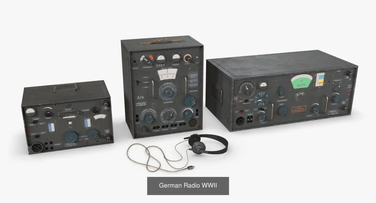 The collection includes 3 german radio, a wall telephone, a headphone D model and 2 cable rolls.