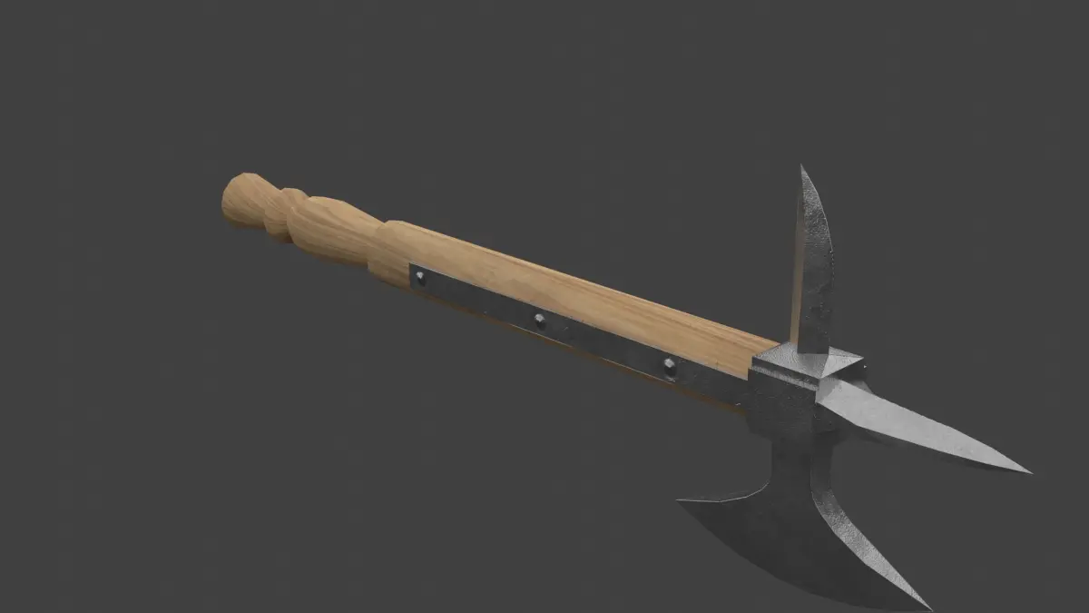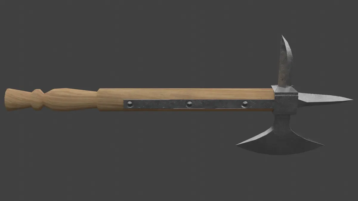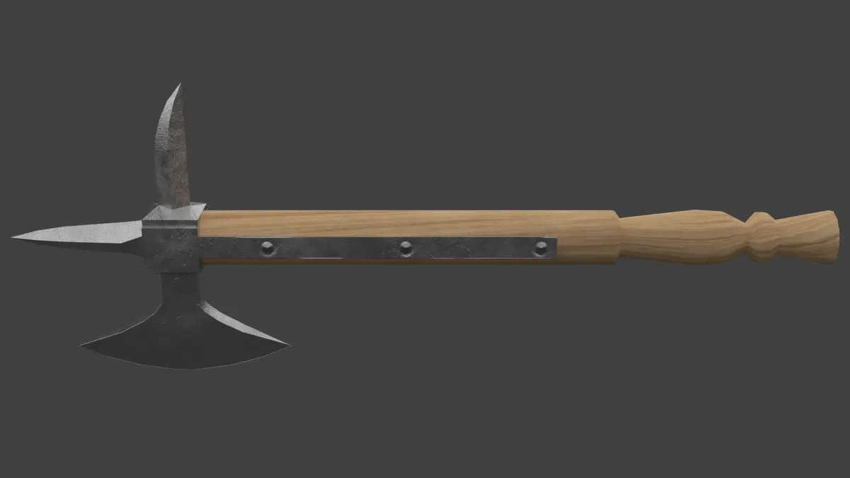 This is a low poly model of a German Cavalry Ax - Throughout the 15th and 16th centuries. the battle ax continued to remain in the arsenal of the European armies, both in the infantry and in the cavalry.