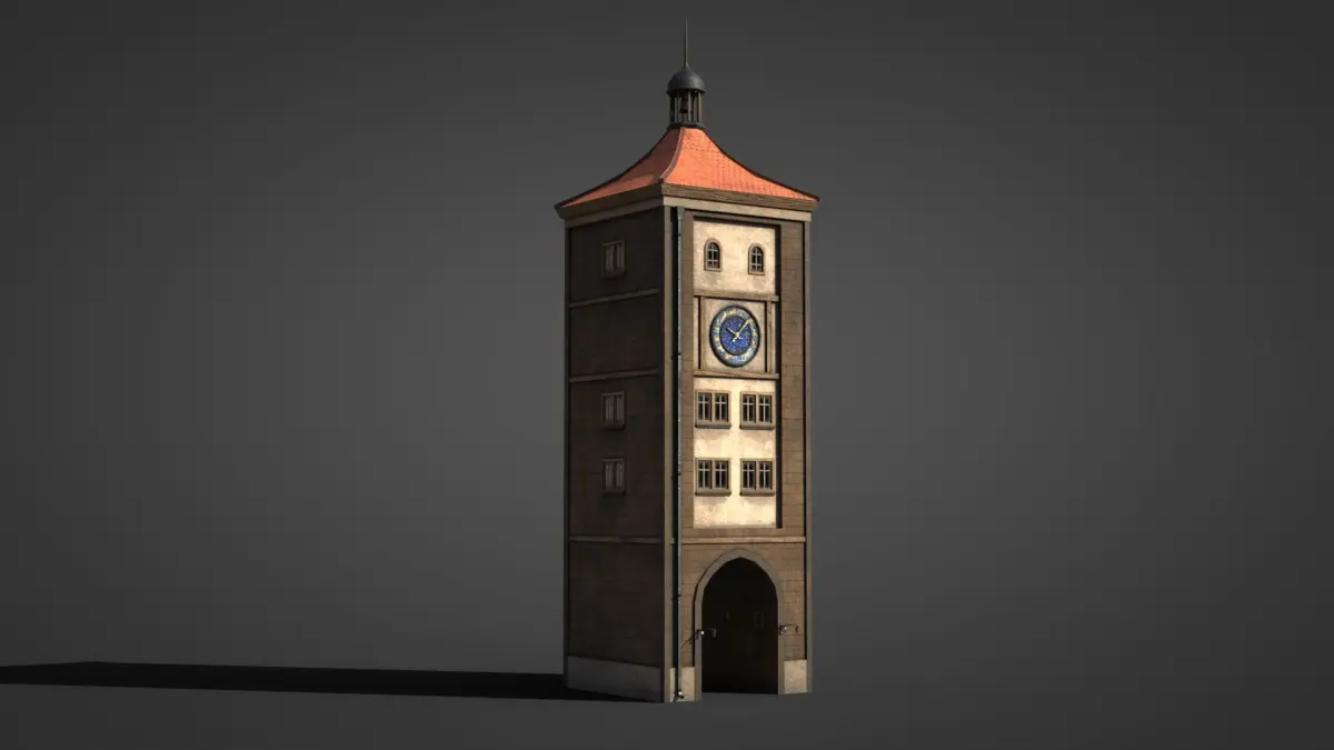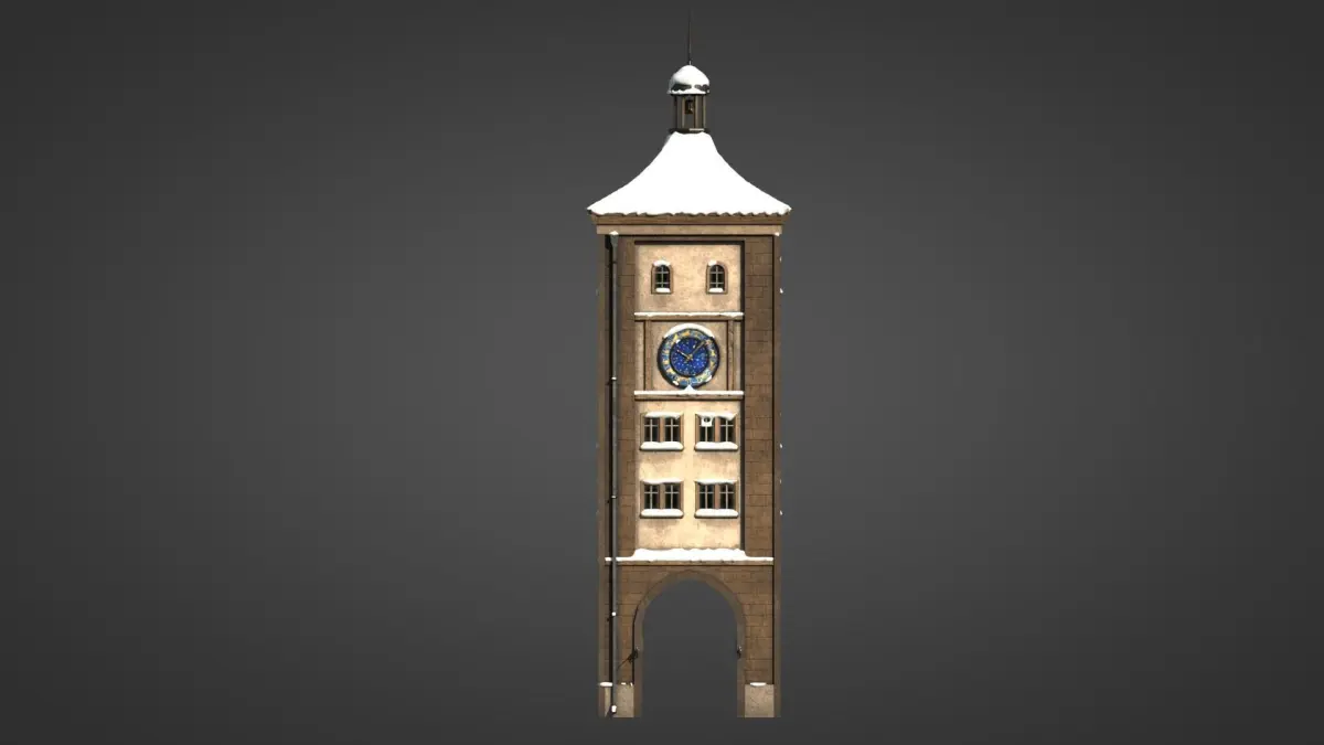 German clock tower building. There is also a snowed version. This house is part of a german colection, this is the number 3.