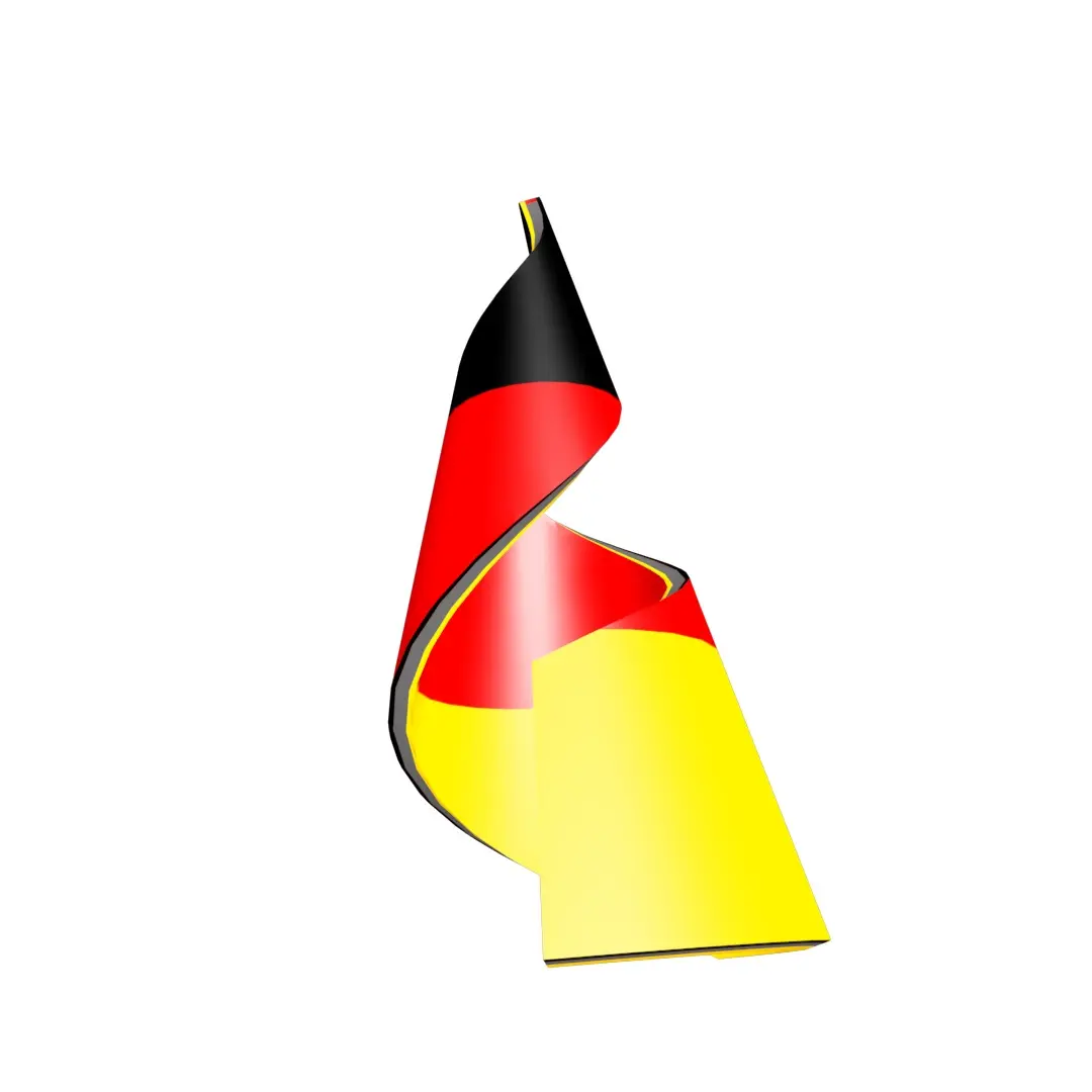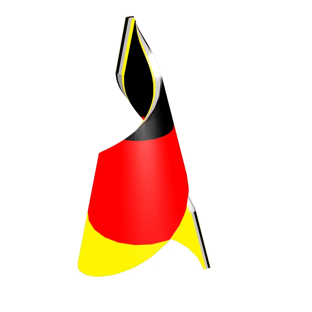 A 3d Model of the German flag on helical structure of different extentions including 3ds-Max and Blender. It has three colours and is made of three equal horizontal bands coloured black (top), red, and gold (bottom). The Dienstflagge or service flag is the version of the flag for government use. It has the national coat of arms in the centre. The Federal Republic of Germany is a country in Central Europe. It lies between the Baltic and North Sea to the north and the Alps to the south.