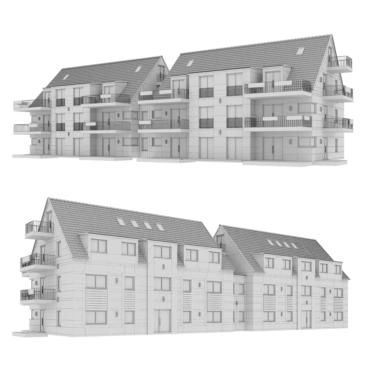 House in Germany. The archive max2016, max2013,fbx, obj. The whole roof is made by geometry.