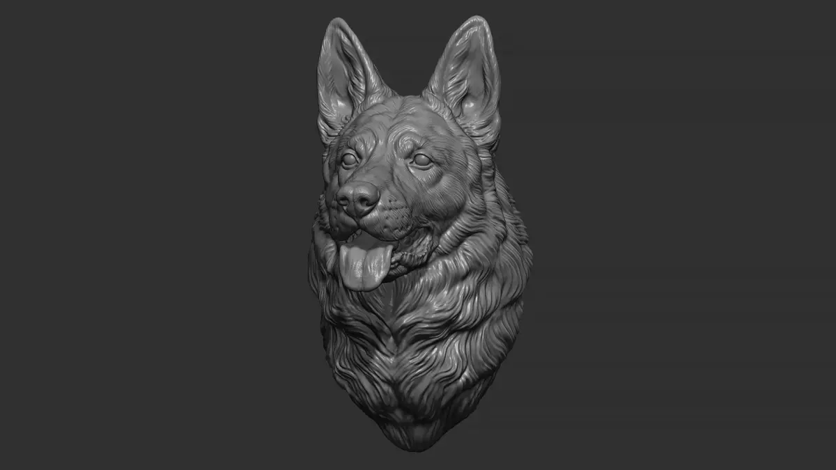 500K STL, OBJ triangulated, German shepherd on the wall