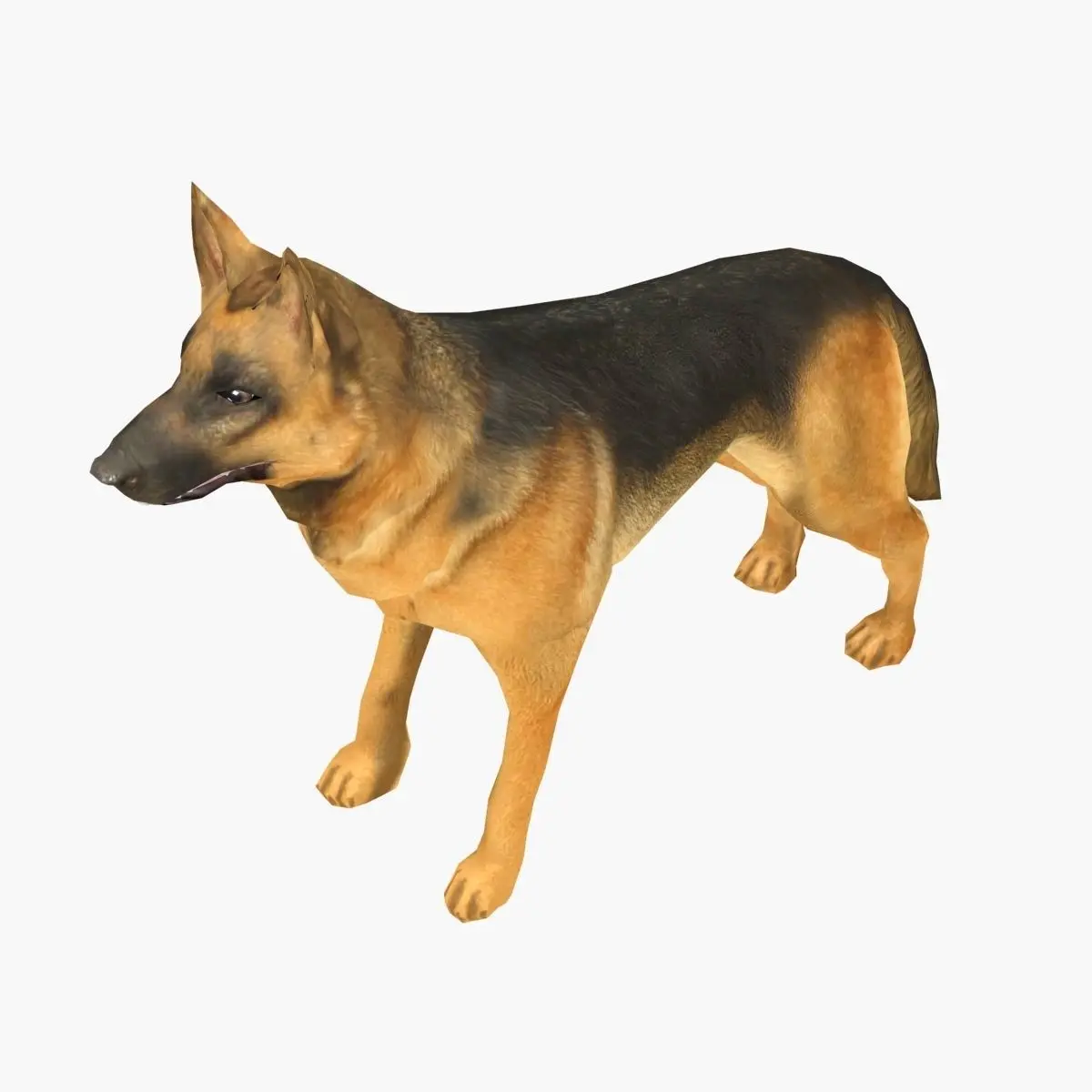 Low poly model is the German Shepherd is fully prepared for further use in animation and your game. Texture: Diffuse,normal map 1024x1024 Model created in 3dmax 2014 FBX and OBJ formats included.
