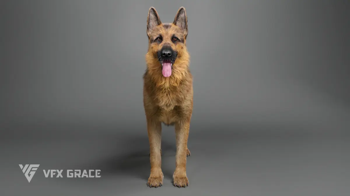 This is a high-quality GermanShepherd model with maps, fur, rigging and two animations. The fur is created in XGen interactive with enough details, and all textures are rendered with Arnold renderer for realistic effects. The rigging is created with reference to real bones, making the animation in line with natural movements. The model is created with Maya 2024 at real-world scale.