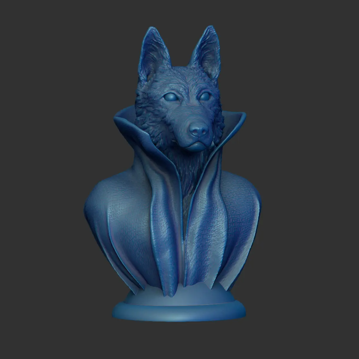 German Shepherd - with Cape Collar on PedestalCut (large format and whole)3D Model FileHigh-Polygo