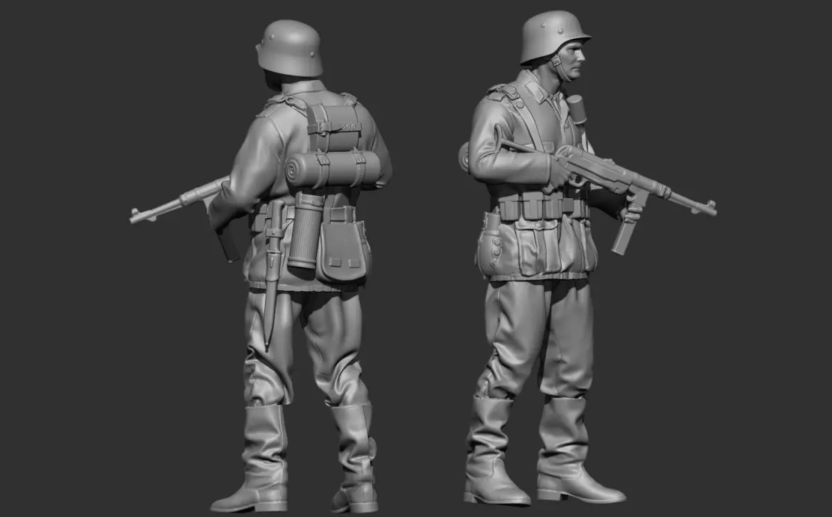 Wehrmacht soldier model with guns, clothes and equipment. Soldier model of the Second World War.