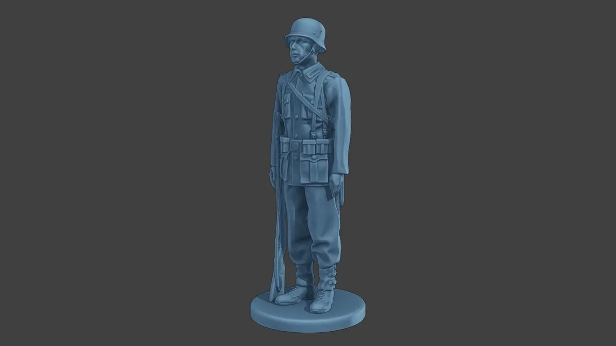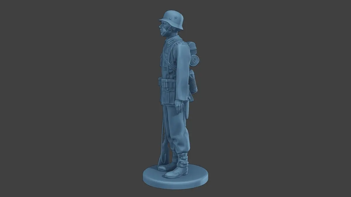- German soldier for WWII Dioramas with different equipment. Model in a stand pose.