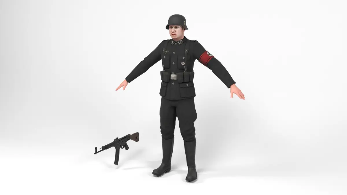 3D model of a German SS soldier of the second world war. Weapon included. The model includes bones and several animations. Model ideal to be used in games, advertising and video production. Low-poly models to be used easily in any project.