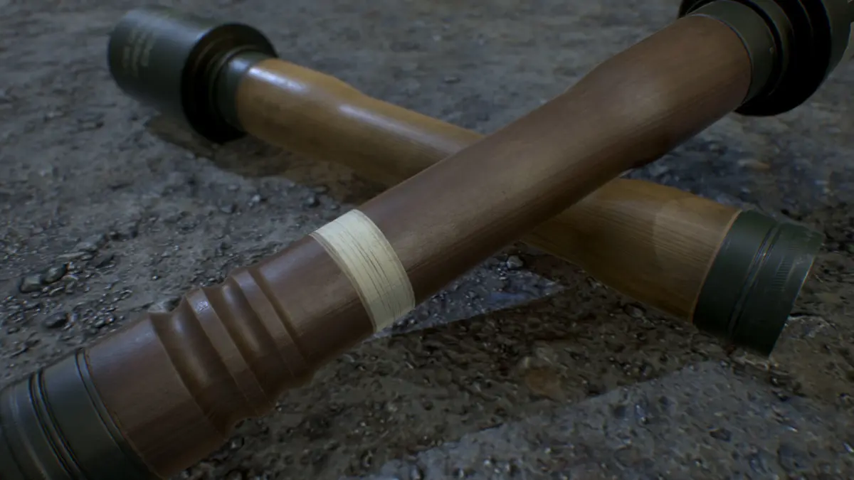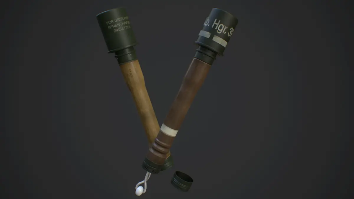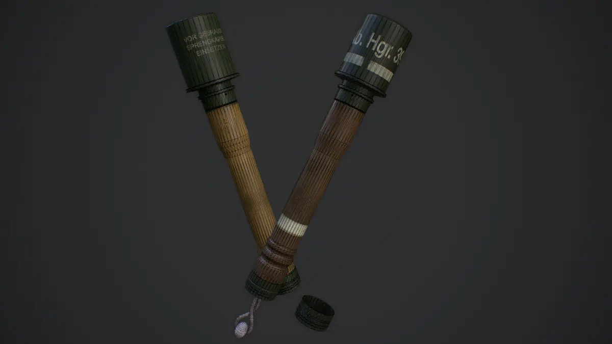 A set of two german world war 2 era hand grenades. (Stielhandgranaten) Included are the M24 explosive grenade as well as the M39 smoke grenade.