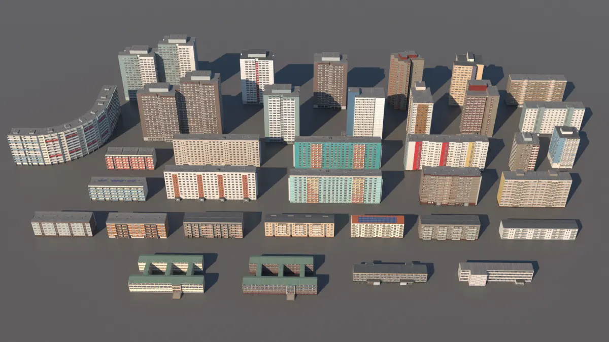 Germany DDR building series: WBS 70, QP-64, Q3A, IW58, WHH GT 18, WHH 84, WHH 17, WHH GT 21, Schule, Kindergarten, PH 12, PH 16 P2, P2/10 , M10