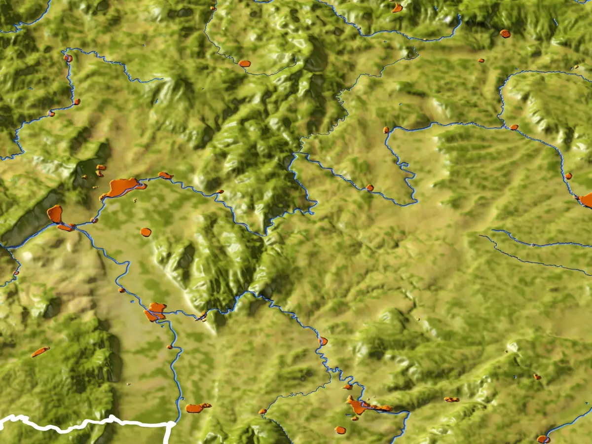 The 3D relief is taken from reprojected NASA shuttle radar topography data, with the elevation exaggerated. The 3D relief is baked into a 552x750 mesh with 833379 polys, 418021 vertices (for the main map).