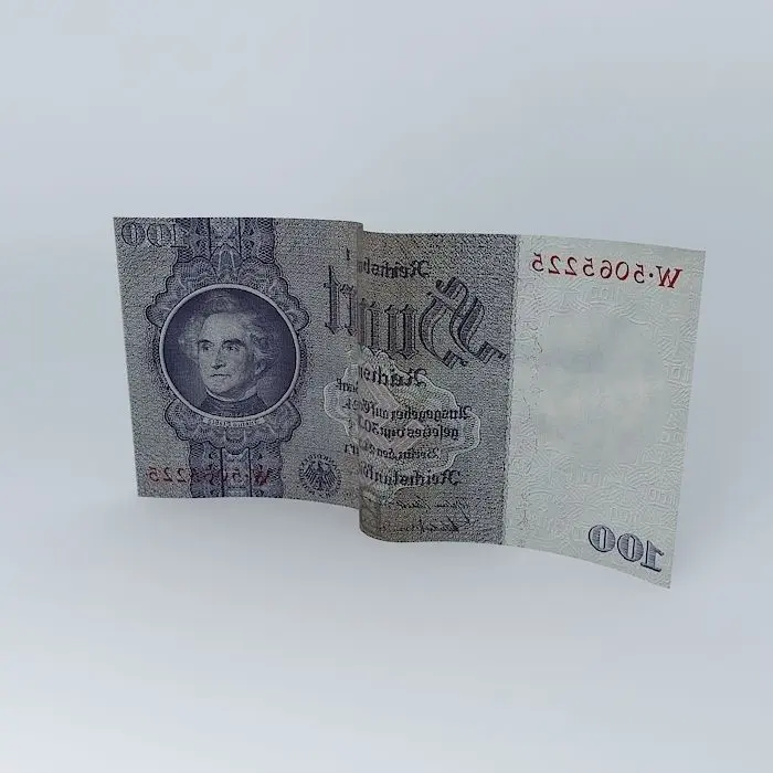 This 3D model was originally created with Sketchup 8 and then converted to all other 3D formats. Native format is .skp 3dsmax scene is 3ds Max 2016 version, rendered with Vray 3.00 No 3 in the German Currency of days gone by... BE AWARE!... Symbols on this Banknote May Offend! Please Note!.... this is Low Poly 450 kbs... Poddley Tales Books Euro does not support... Or condone in any way... or try to glorify Nazism Germany or any neo-fascist organization... This Model is for the Sole Purpose of Depicting Currencies from All Countries and in All Era's.. This one is for Modellers with a Militaria Flair... Lyn Poddley...