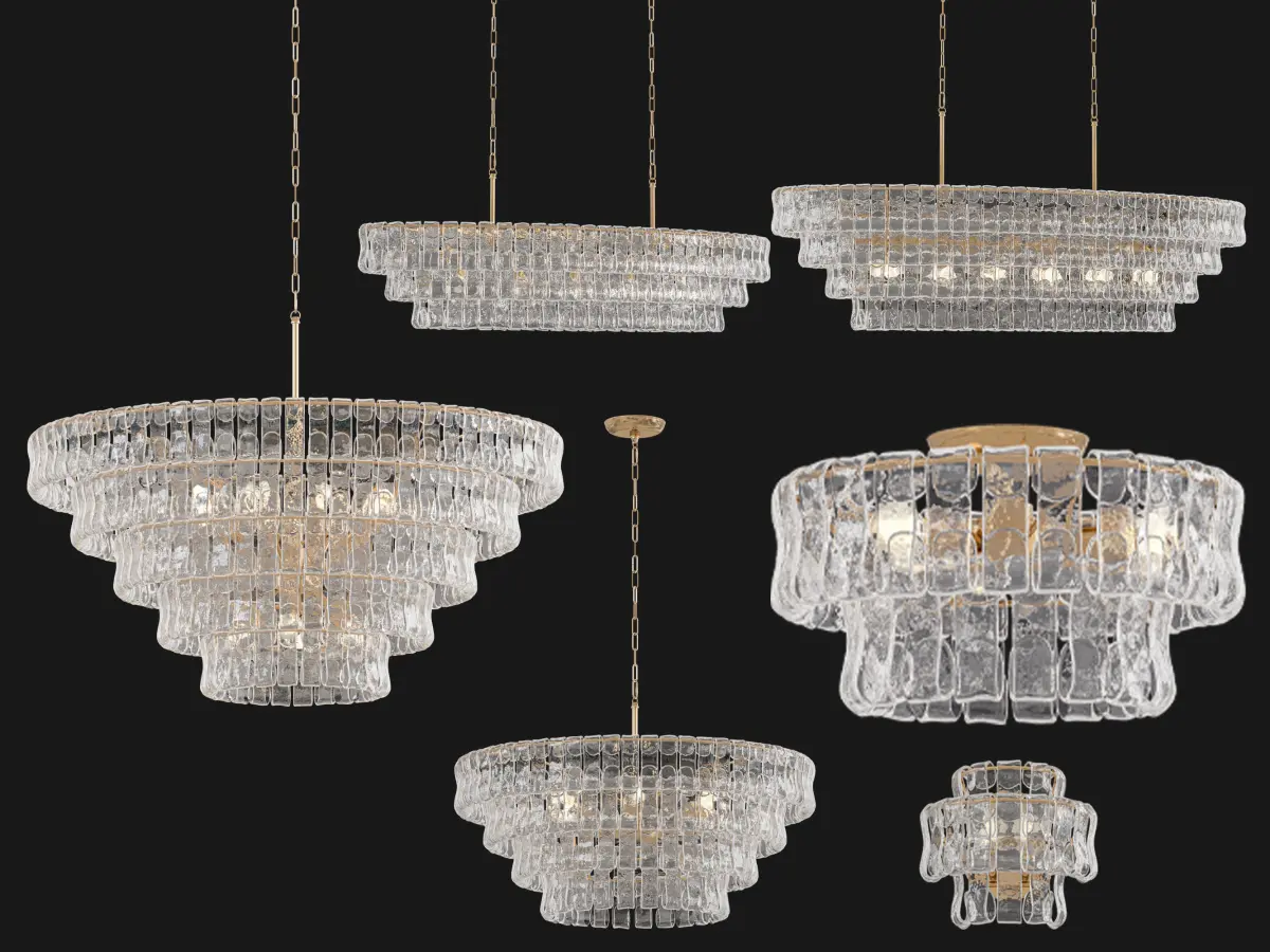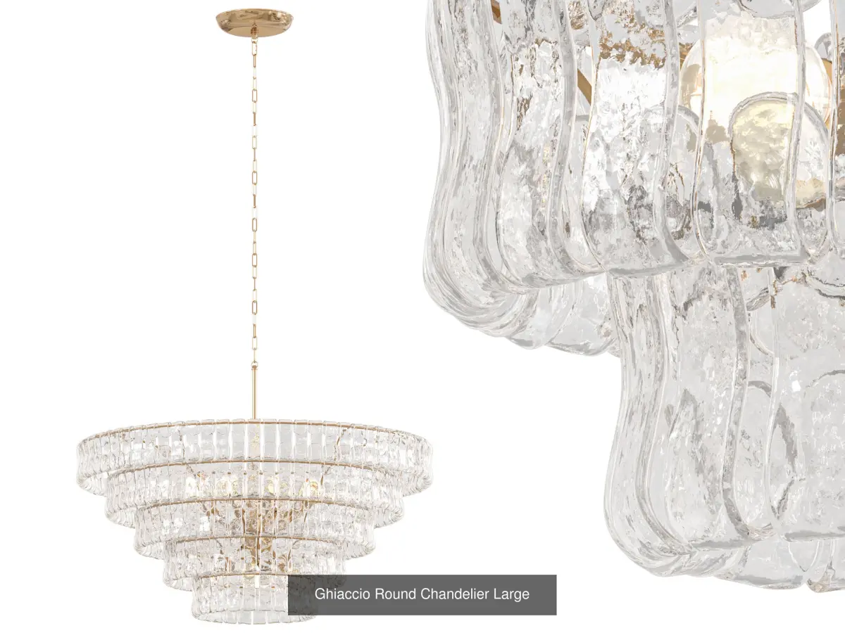 Inspired by famously adorned Italian glass, our Ghiaccio Chandelier artfully diffuses light through pieces of curved, textured glass. Complemented by a plated-brass or bronze finish, Ghiaccio elegantly illuminates any room.