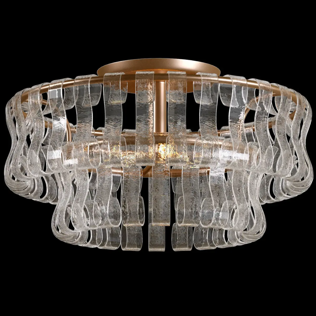 Ghiaccio FlushmountInspired by famously adorned Italian glass, our Ghiaccio Lighting Collection artfully diffuses light through pieces of curved, textured glass. Complemented by a plated-brass finish, Ghiaccio elegantly illuminates any room.