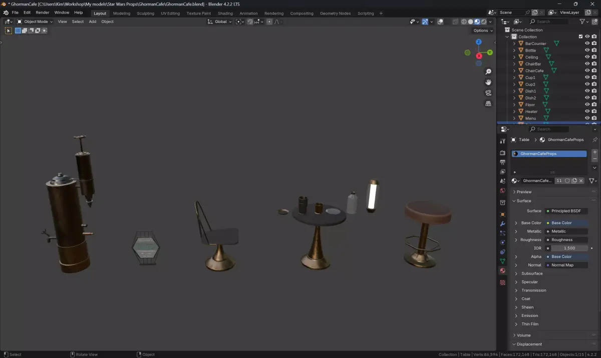 you can adjust color and intensity of lighting by editing GhormanCafeLights material