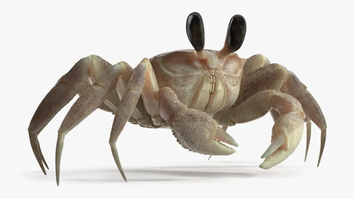 Ghost Crab Crustacean Moving Pose Pink Beige is a three-dimensional model of ghost crab that is a species of sand crab crustacean.