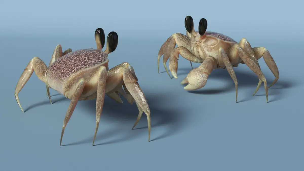 Ghost Crab Crustacean Moving Pose Pink Beige is a high quality, photo real 3d model that will enhance detail and realism to any of your rendering projects. The model has a fully textured, detailed design that allows for close-up renders, and was originally modeled in 3ds Max 2020 and rendered with V-Ray. Renders have no postprocessing!