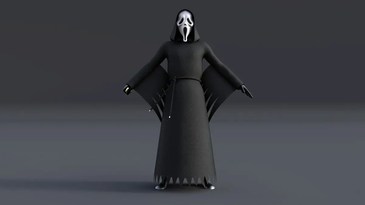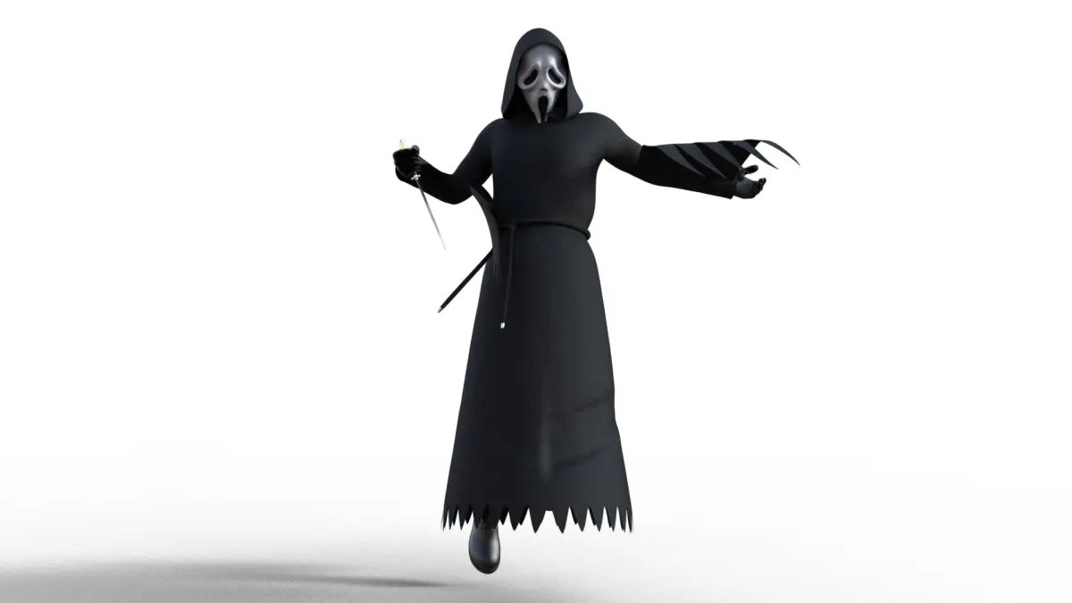 Ghostface is the main antagonist of the Scream film series. His identity is voiced by Roger L. Jackson in all appearances.Ghostface was named after a vinyl Halloween mask. It was sold as a Father Death costume in real-life. The mask was inspired by the Edvard Munch painting, The Scream.