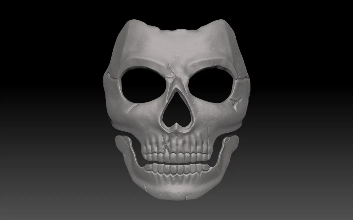Но если в старых частях это была всего лишь картинка на балаклаве, то в ремейке череп стал вполне твердым предметом. Мы в Craft Vision сделали модель, которую можно распечатать на 3D принтере, и закрепить на обычной черном балаклаве.