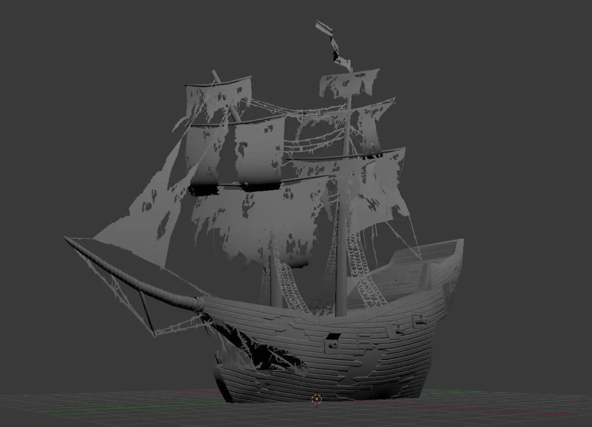Cartoonish low poly ghost ship.