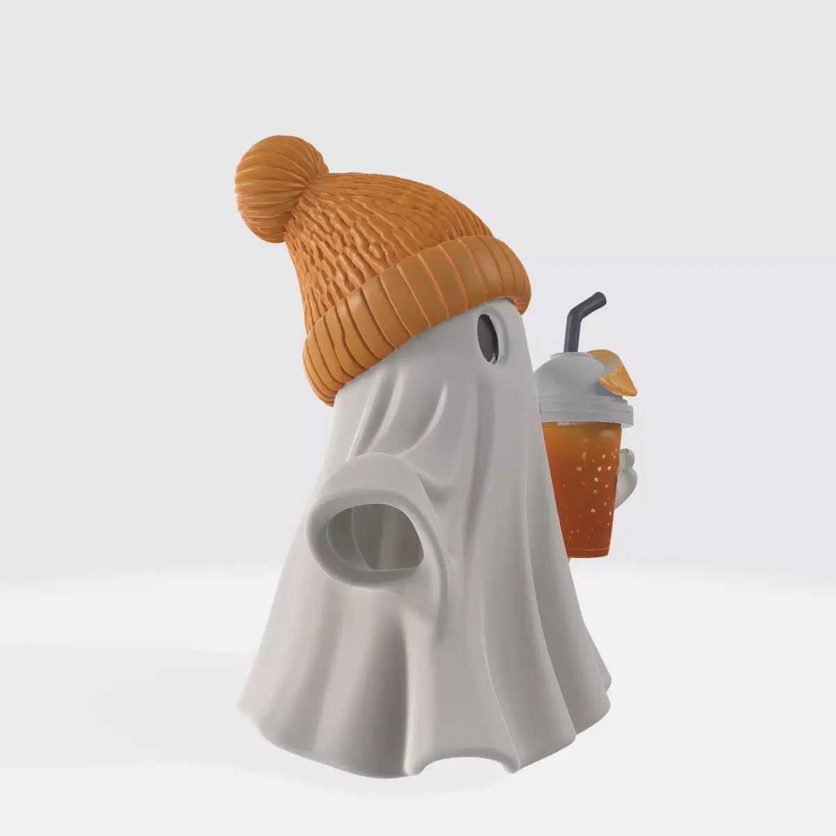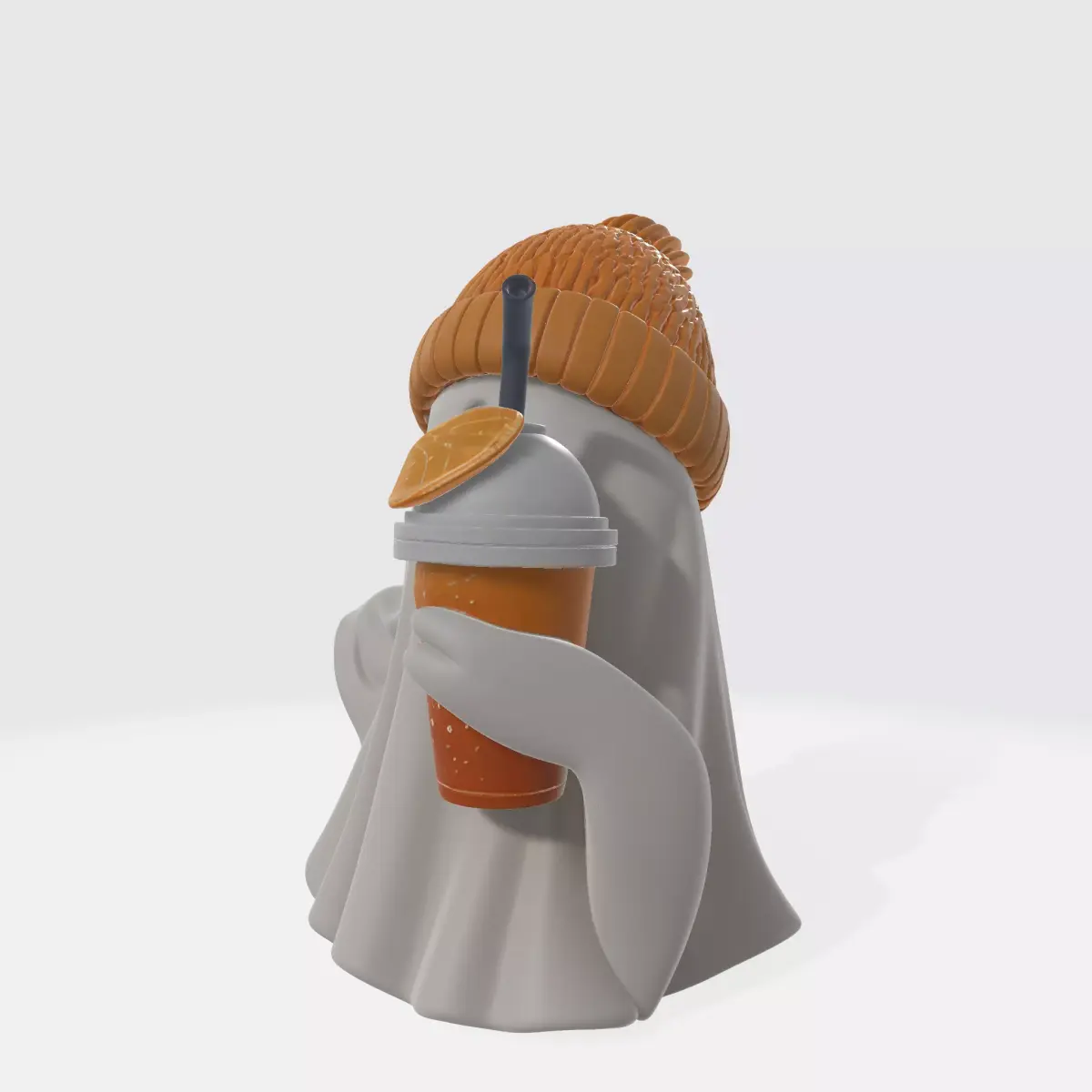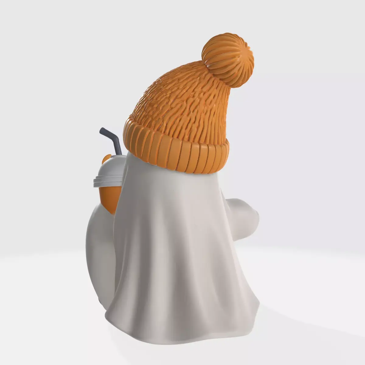 Bring some cozy spooky vibes into your home with this adorable 3D printed ghost figurine! Featuring a playful ghost wrapped in a flowing sheet, wearing a textured knitted beanie with a pom-pom, and holding a refreshing drink topped with an orange slice, this design is both whimsical and charming. Perfect for Halloween lovers, autumn enthusiasts, or anyone who enjoys unique and modern decorations with a touch of personality.