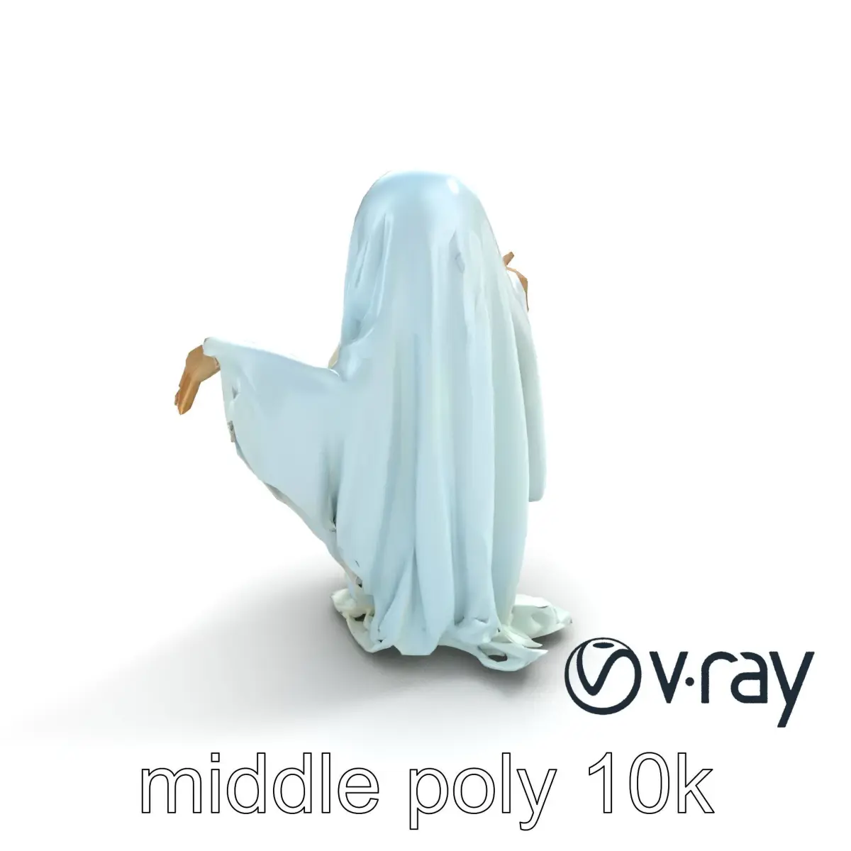 Each model has 3 levels of detail: low-poly, middle-poly, and high-poly, which allows for the use of this model in production rendering(such as 3ds max, Maya, Cinema4D, Blender, Vray/Corona/Cycles, and all other), game engines (Unity and Unreal compatible), and interactive presentations, providing a choice of detail based on the LOD System principle. This ghost model is perfect for atmospheric scenes, Halloween settings, haunted houses, or any project needing a spectral, eerie element. With its glowing aura and mournful expression, it brings a unique visual to your scenes. The model's textures are PBR, Diffuse, NormalMap, and reflection/roughness/metallic, suitable for any modern rendering engine. All models are accurately unwrapped and have no overlapping UVs. All textures are 4096*4096 in size. Please like and leave a comment for the model if you enjoyed it.