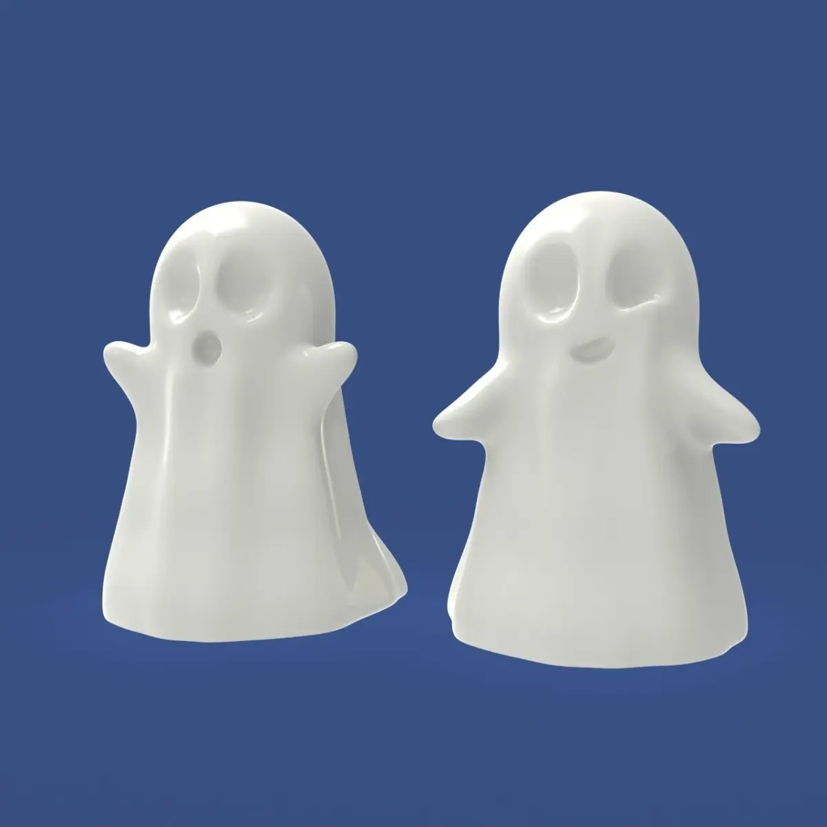 Four free 3D printable models for Halloween!Cute little ghosts will decorate your dioramas and make a wonderful holiday decoration!For the preview, it is presented in different materials for a better understanding of the form.Scale as you need! For questions about the model or similar works, write in private messages.