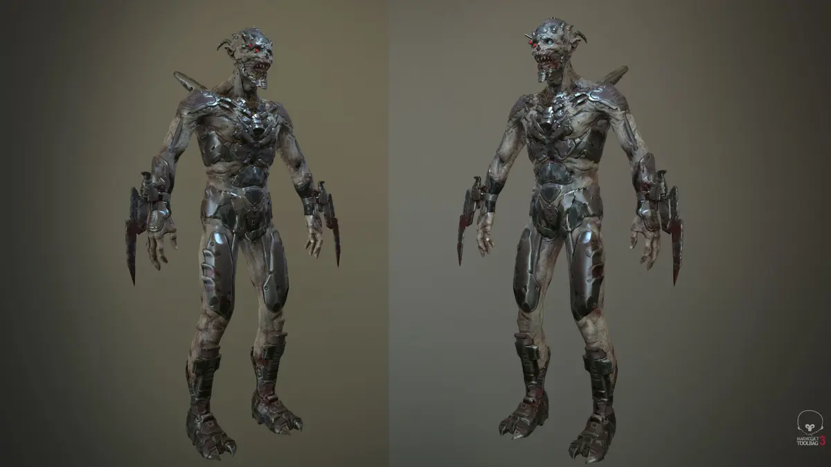 Light armored Ghoul soldier game ready model. Demon creature with cyborg implants,enemy fast impact unit. Good as enemy soldier,or boss character. Fast and furious)Rigged and animated. Also rigged for unreal skeleton and ready for library animations in engine.4K non overlapped textures.Specs: Tris - 29,915 Faces - 15,720 Verts - 15,273