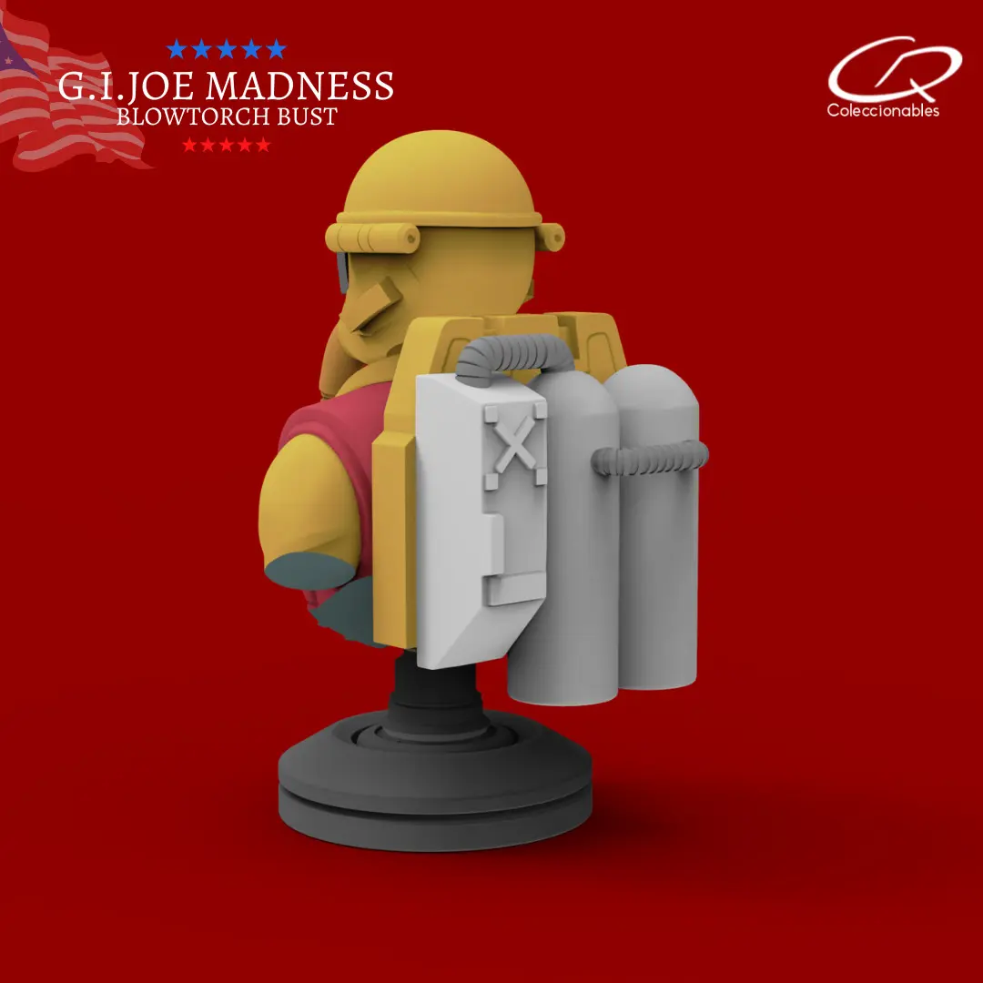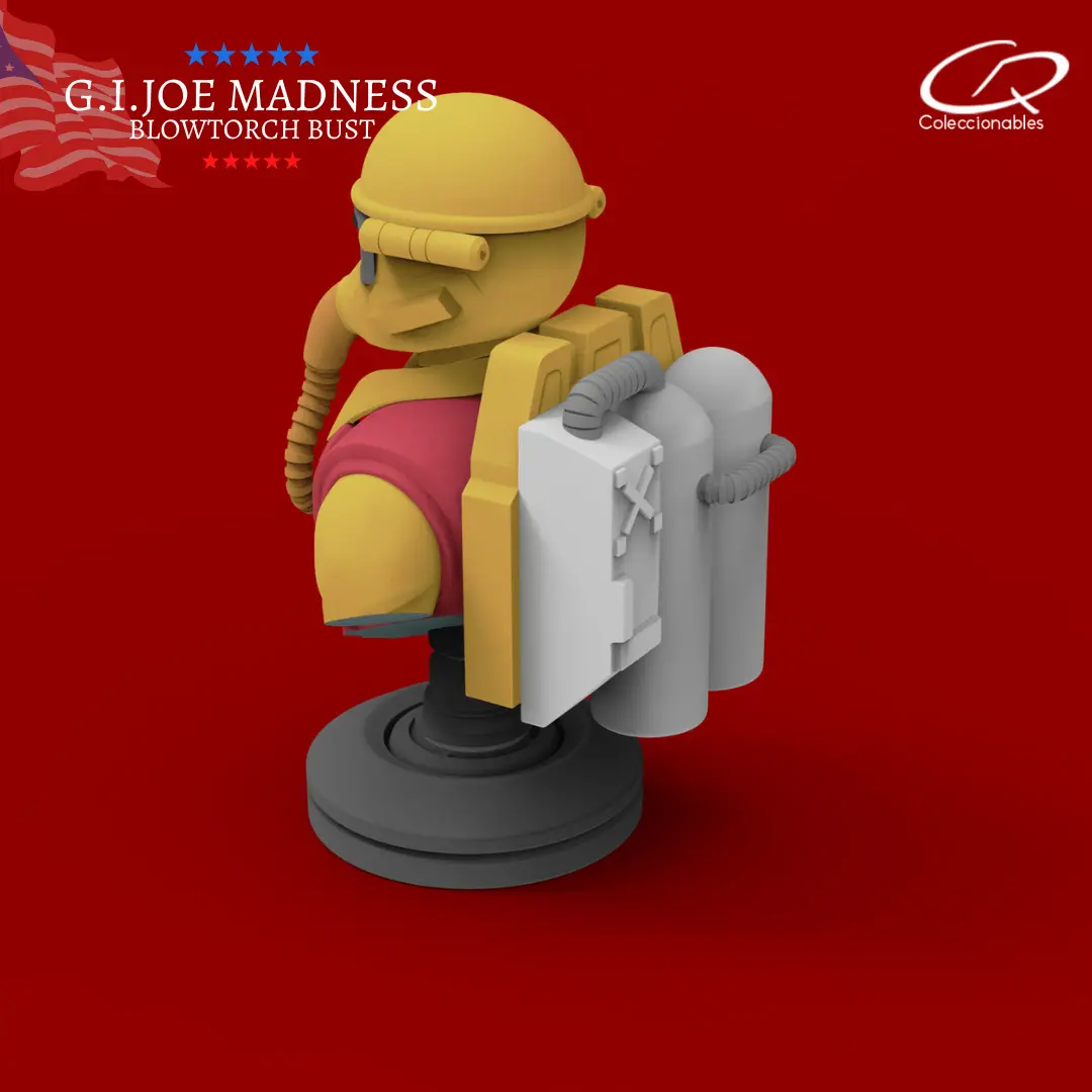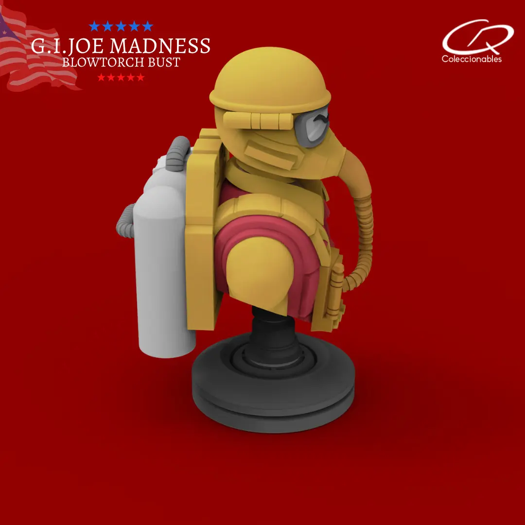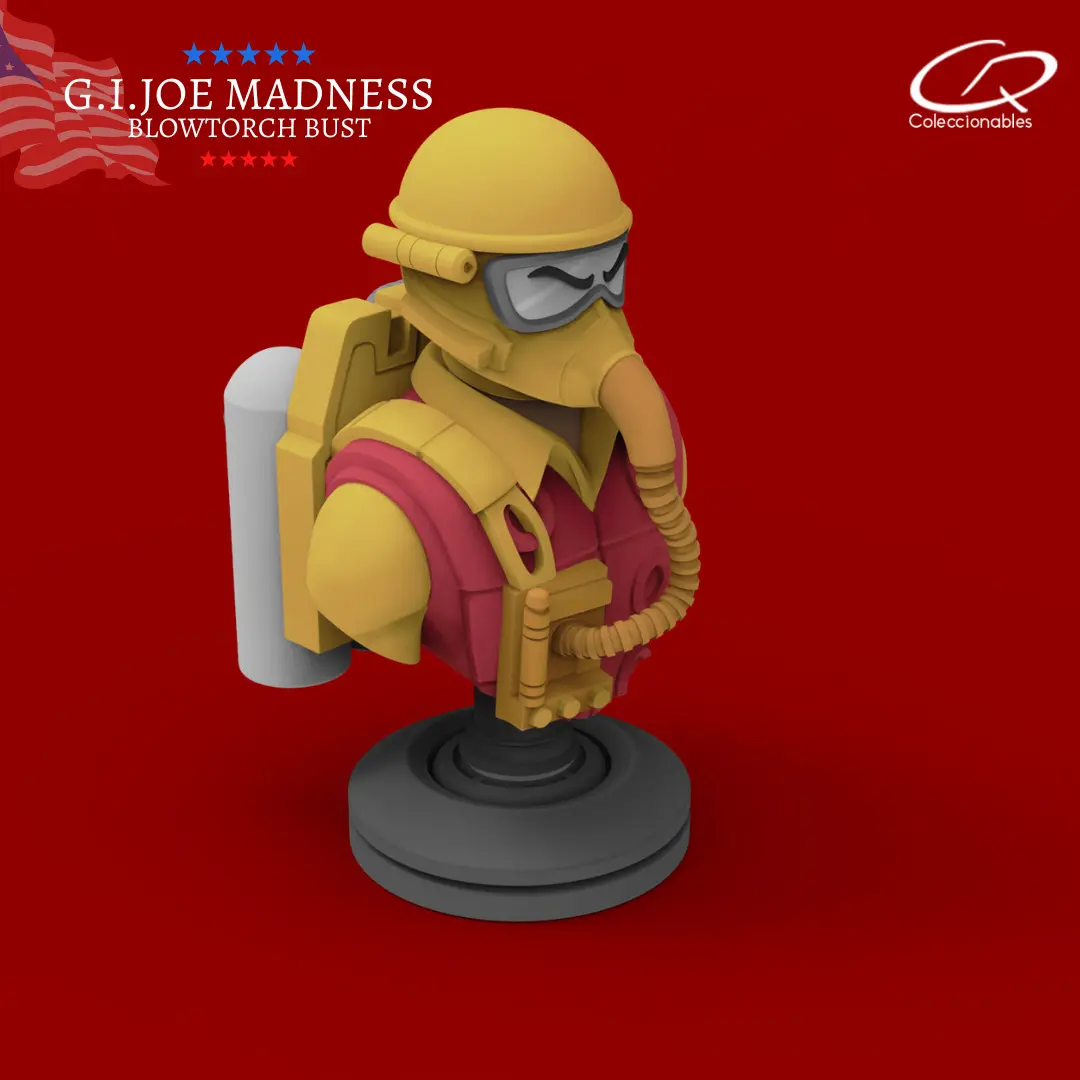 Blowtorch inspired by the G.I JOE characters. This product comes with all the STL files ready for 3d printing. This bust has an approximate height of 3.9 inches. Its size is ideal for print in a standard 3d print machine and has the perfect size to collect them. Each character can be printed in the technology of your choice - PLA or Resin - and then you can paint them with the visual reference that we share with the download files.