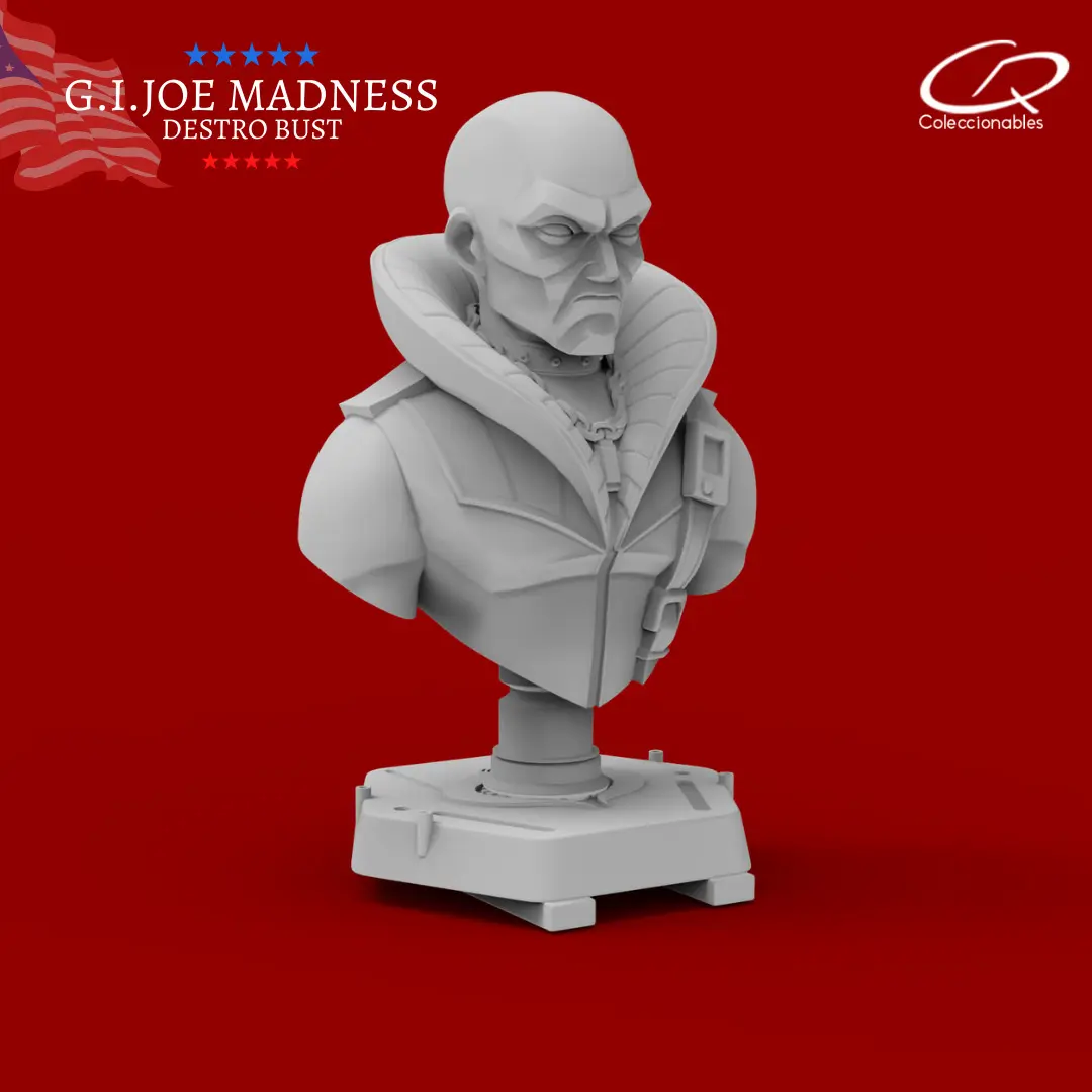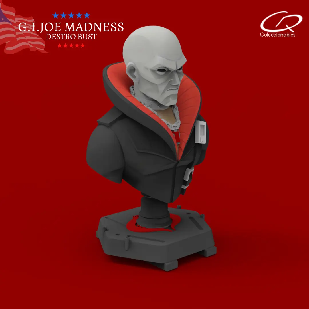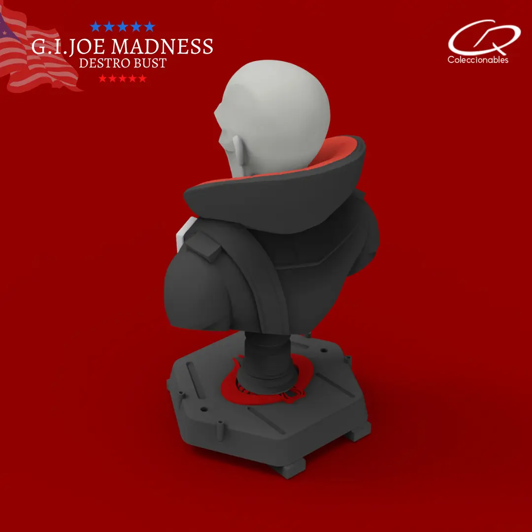 Destro inspired by the G.I JOE characters. This product comes with all the STL files ready for 3d printing. This bust has an approximate height of 3.9 inches. Its size is ideal for print in a standard 3d print machine and has the perfect size to collect them. Each character can be printed in the technology of your choice - PLA or Resin - and then you can paint them with the visual reference that we share with the download files.