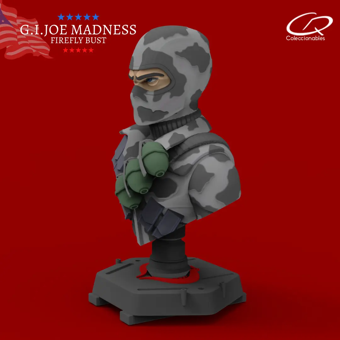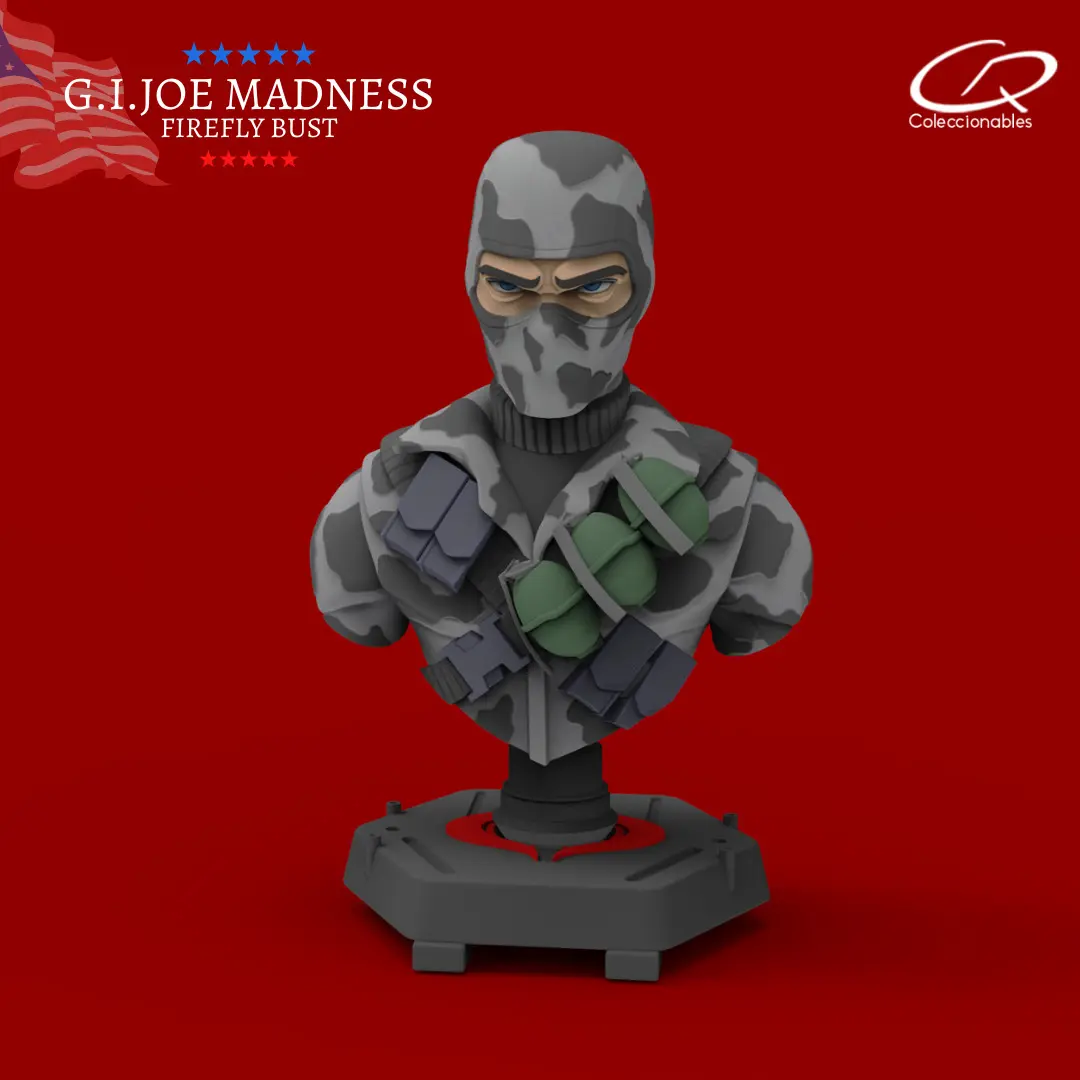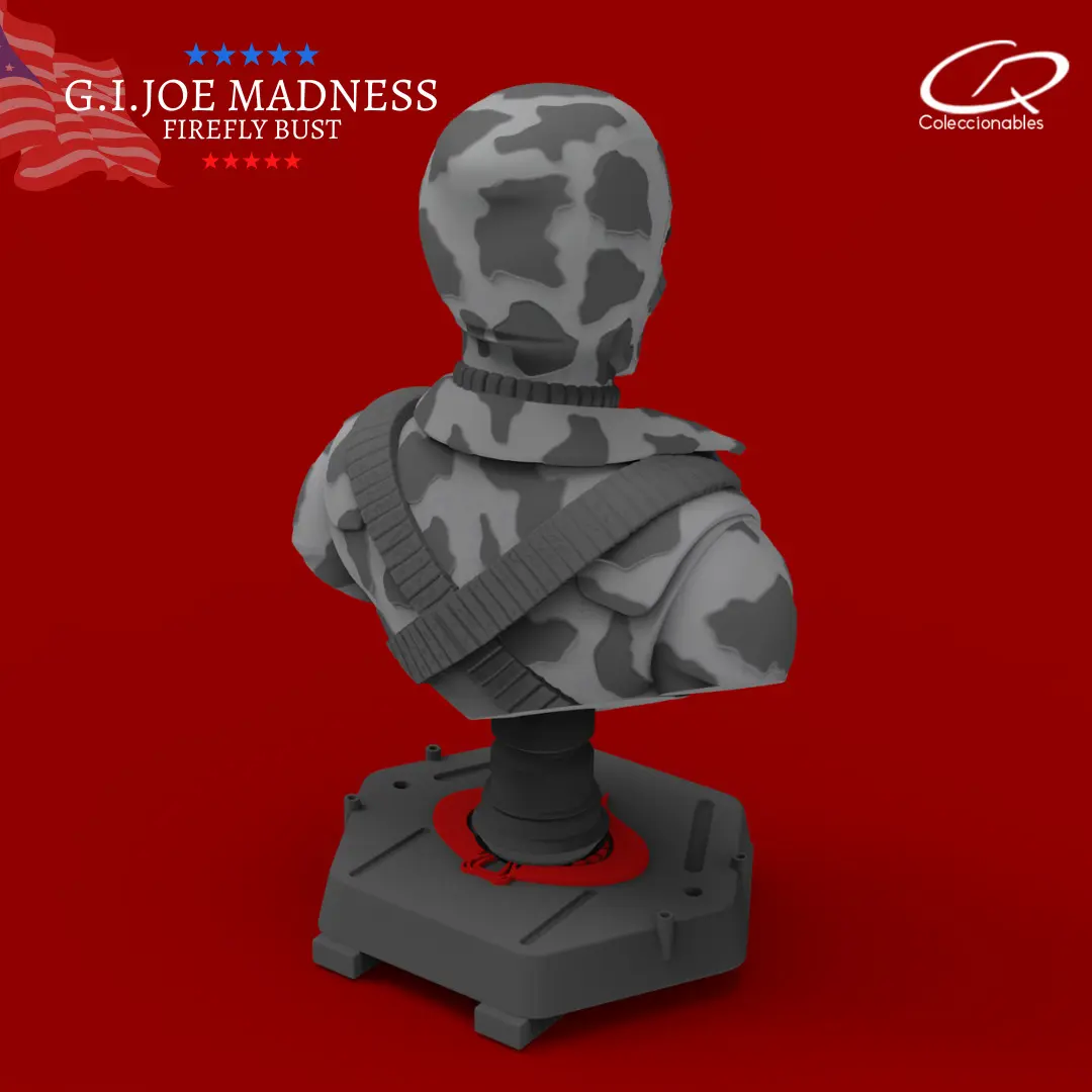 Firefly inspired by the G.I JOE characters. This product comes with all the STL files ready for 3d printing. This bust has an approximate height of 3.9 inches. Its size is ideal for print in a standard 3d print machine and has the perfect size to collect them. Each character can be printed in the technology of your choice - PLA or Resin - and then you can paint them with the visual reference that we share with the download files.