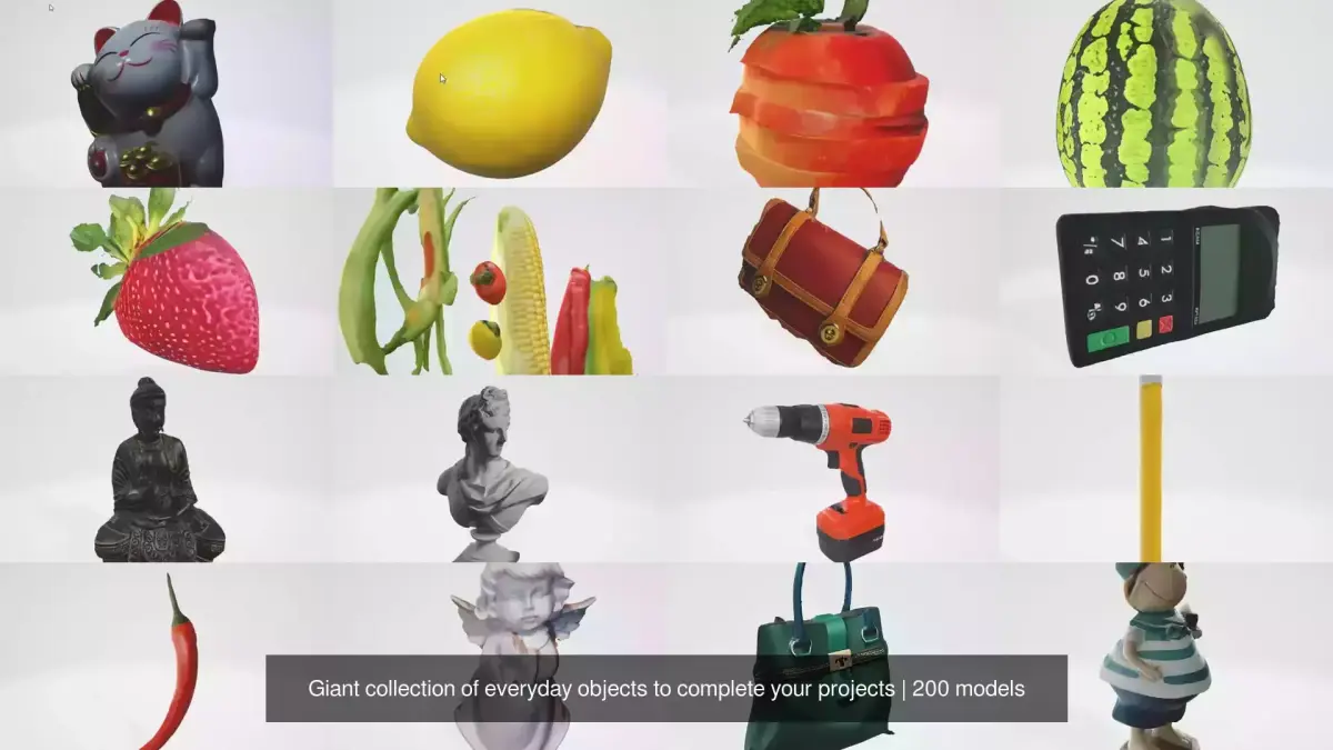 This giant collection of everyday 3D objects was designed to help you build complete, believable scenes faster and more efficiently. It brings together a wide variety of common items used in daily life, making it an essential asset pack for games, architectural visualization, animations, product renders, and commercial projects.