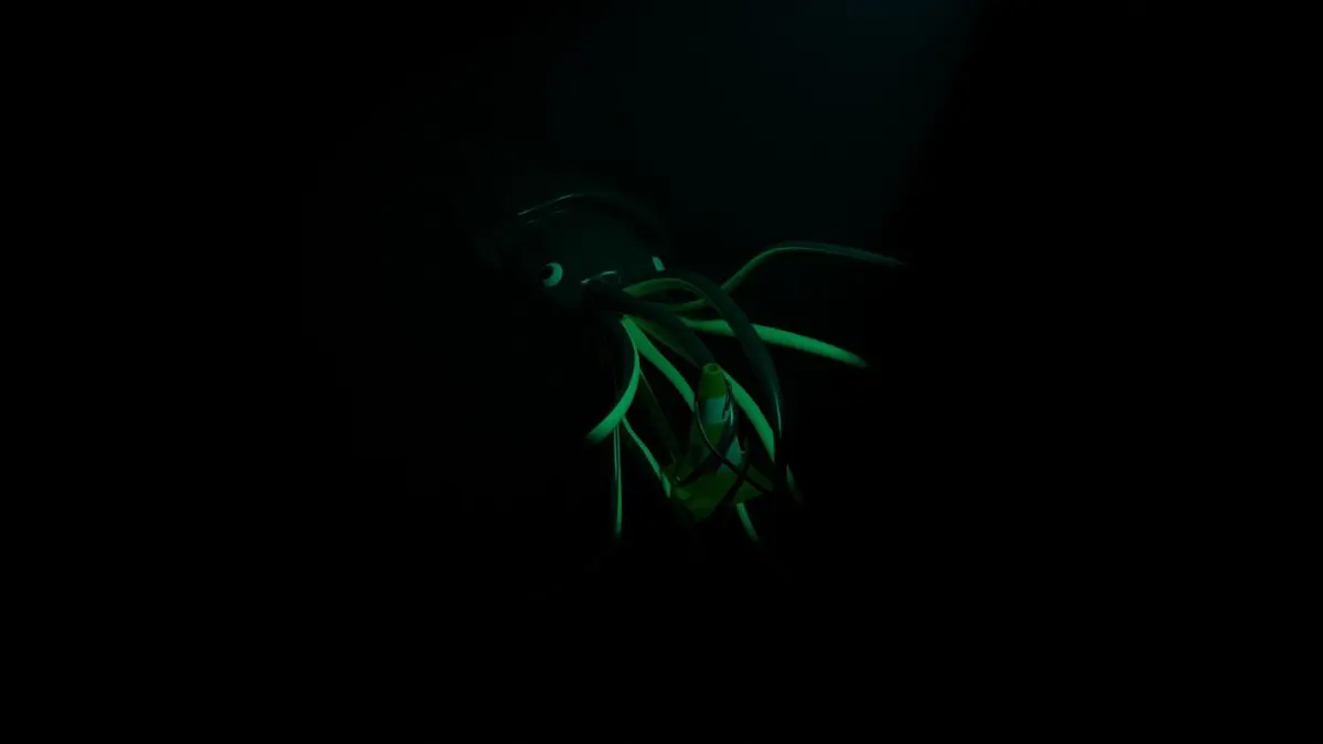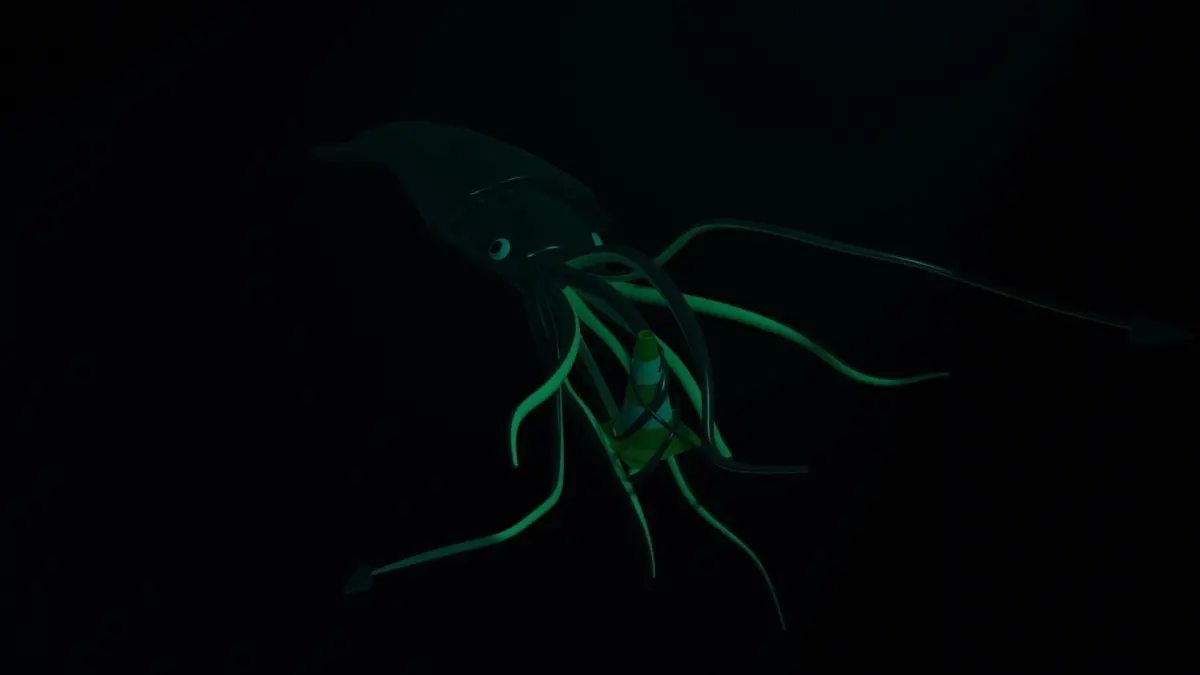 A giant suid, deep in the sea.Holding onto a sunk VLC.Made in Blender, cycles.117403 vertices