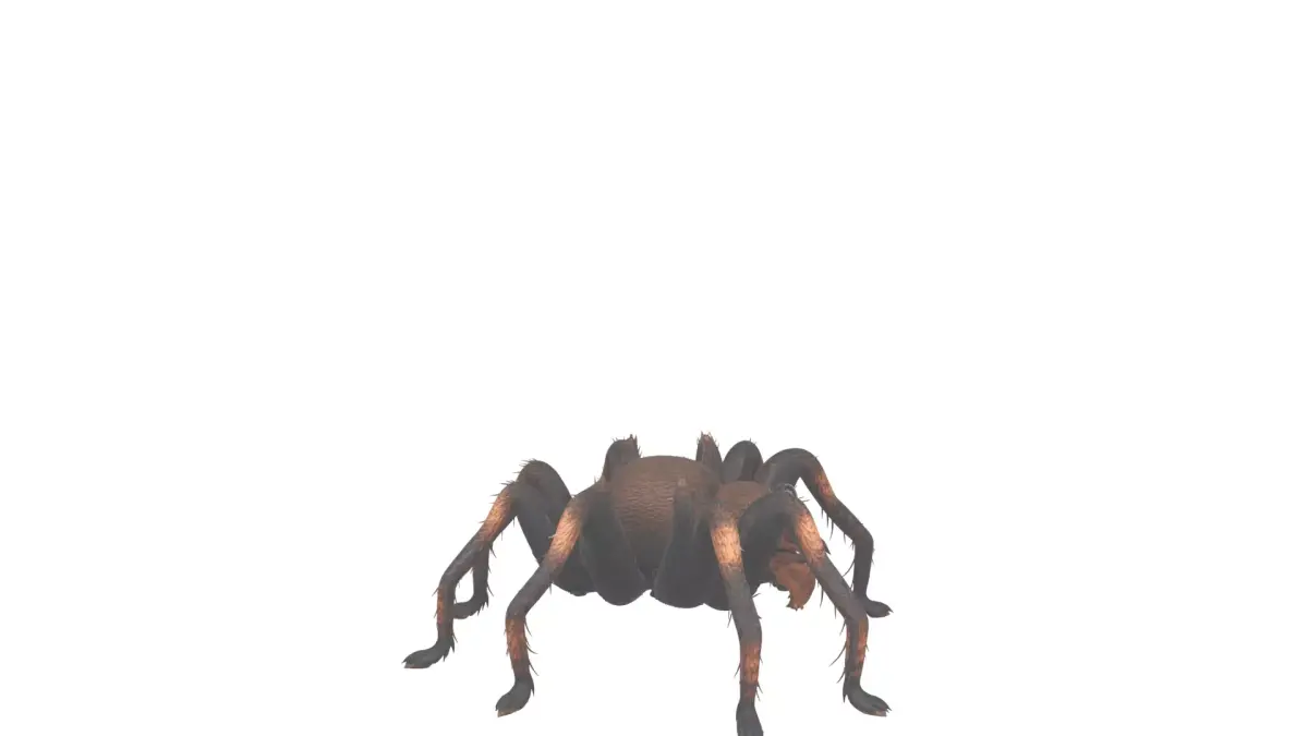 Exquisitely detailed 3D model of a menacing giant spider decoration featuring intricately segmented hairy legs, numerous multifaceted eyes arranged in mesmerizing clusters, and authentically crafted plush fabric mandibles. The model presents four comprehensive perspectives including front view showcasing detailed eye clusters, back view revealing intricate abdomen patterns with subtle texturing, left side displaying fully articulated leg joints with realistic joint structures, and right side highlighting delicate yet sturdy web attachments with strand variations. Perfect for creating spine-chilling Halloween environments, terrifying arachnid-themed scenes, and adding authentic characters to computer games and 3D cartoons.