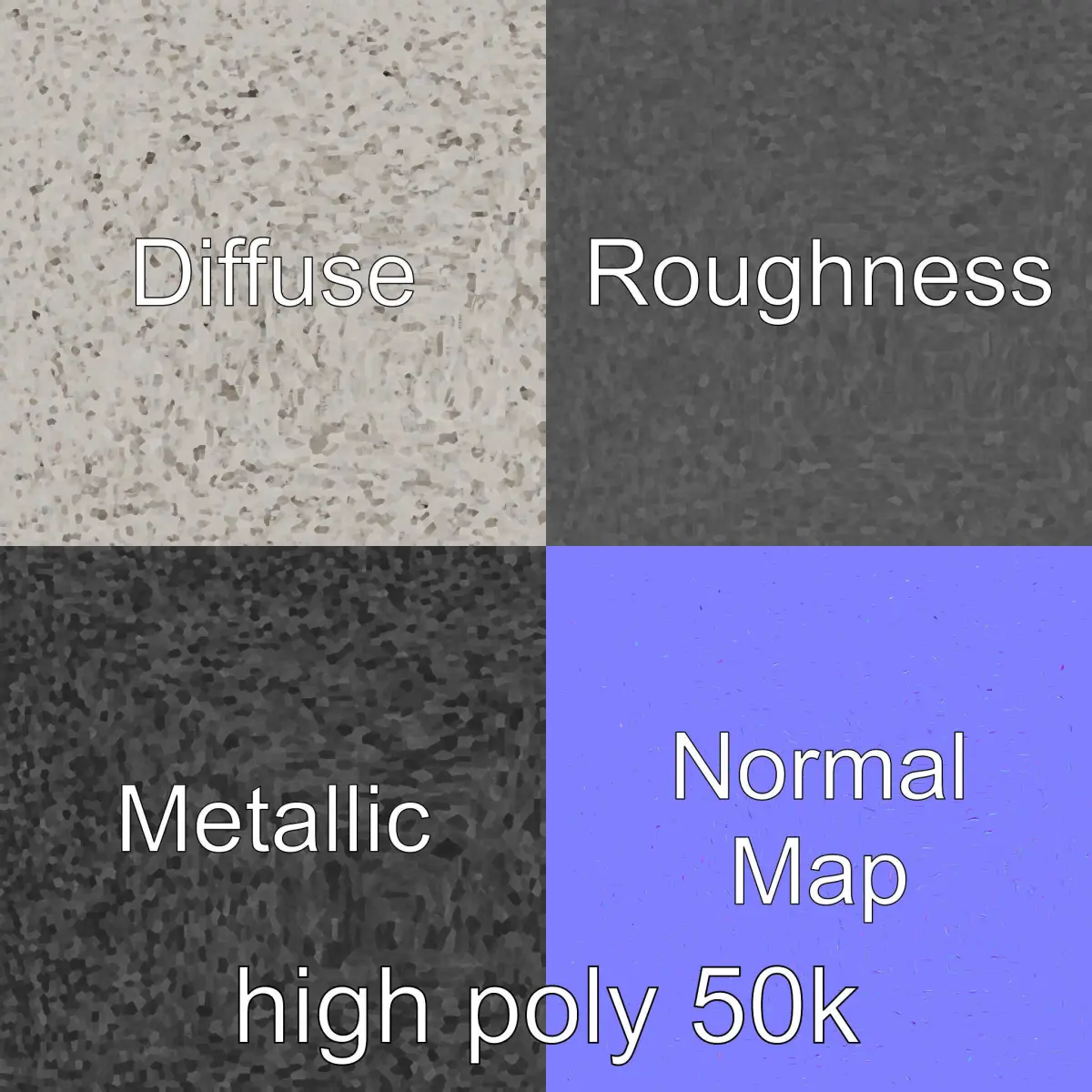 The model's textures are PBR, Diffuse, NormalMap, and reflection/roughness/metallic, which are suitable for any modern rendering engine. All models are accurately unwrapped and have no overlapping UVs. All textures are 4096x4096 in size.