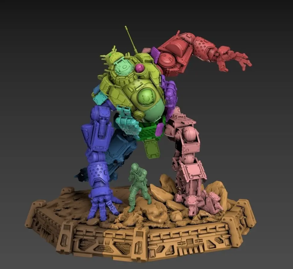 I present you a detailed Titan Atlas 100mm Static SetAsset is based on a 32mm human scaleAsset height is approximately 100mmAlso includes Pilot 32mmExtra hand poses (3)weapons with hand (1)weapons only (1)detailed cockpit with hatches is includedand custom bases
