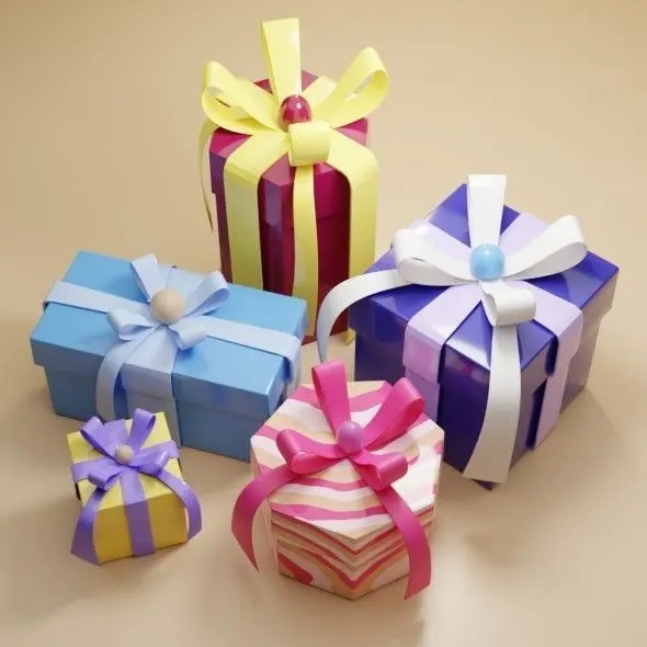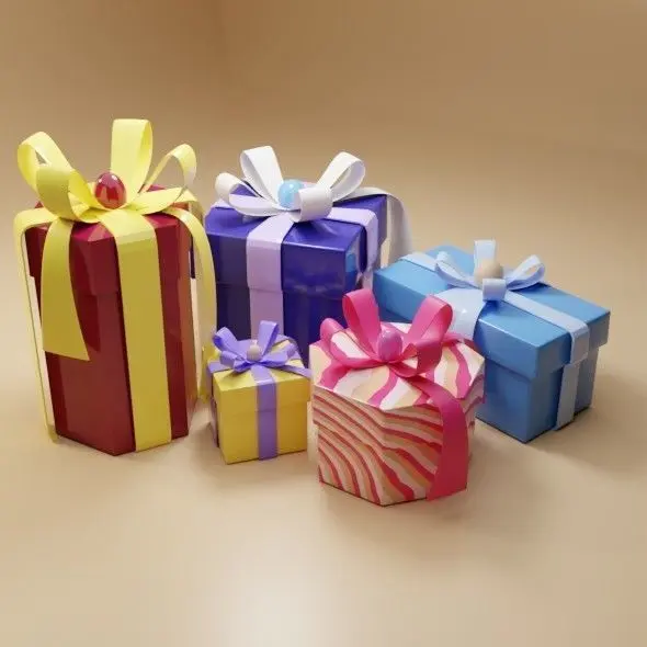 A low poly collections of gift boxes modeled in blender suitable for video scene, decoration, interior design or as assets in gamesmodifiers not appliedits only animated 360turntable in blend formats