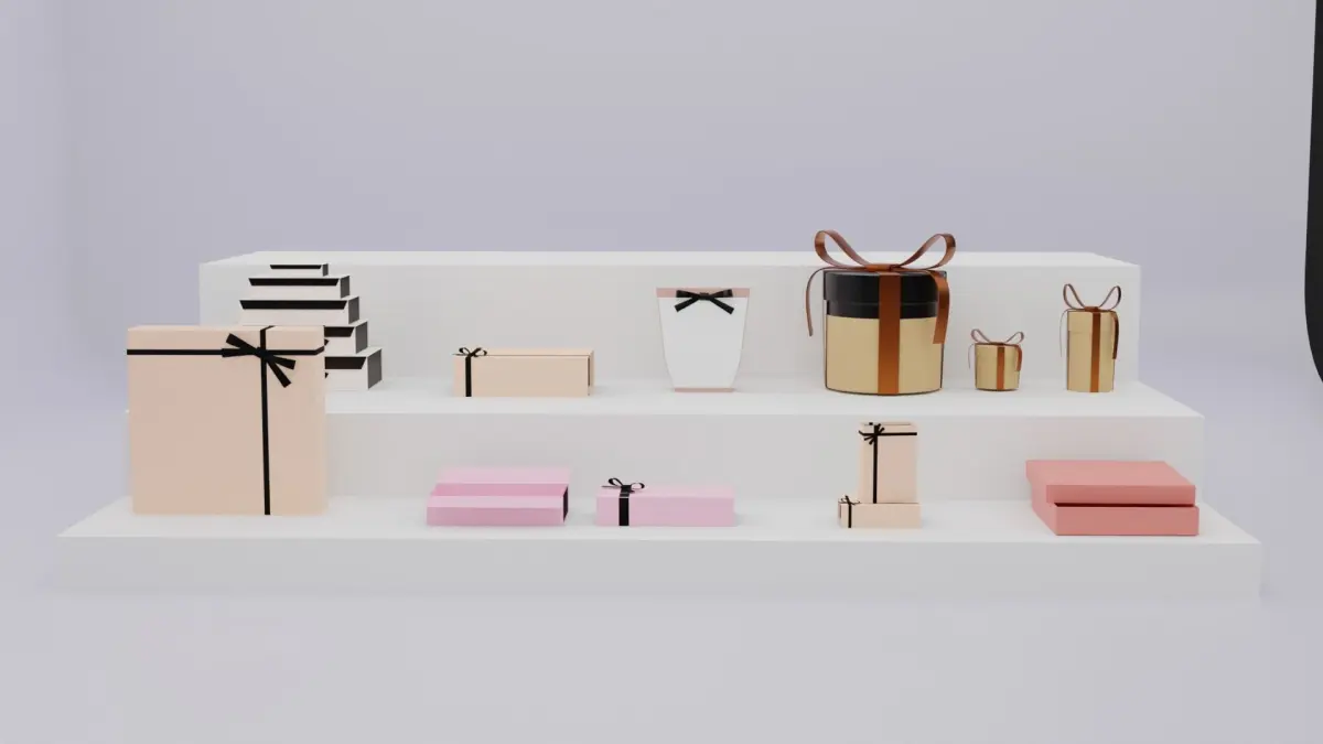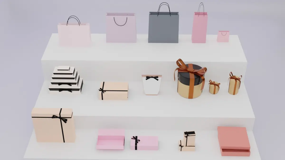 - Contains 16 models: Gift boxes, shopping bag and product packaging.