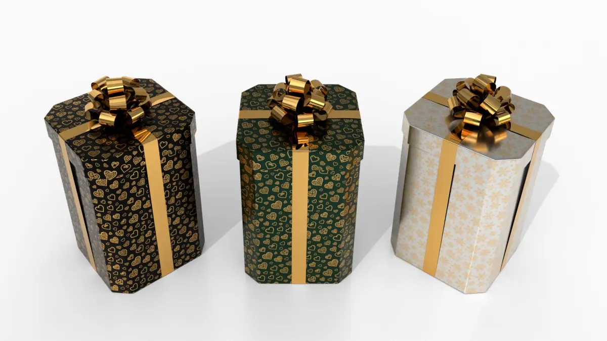 Gift Boxes - Vertical Variety with Glossy Ribbon Rosette