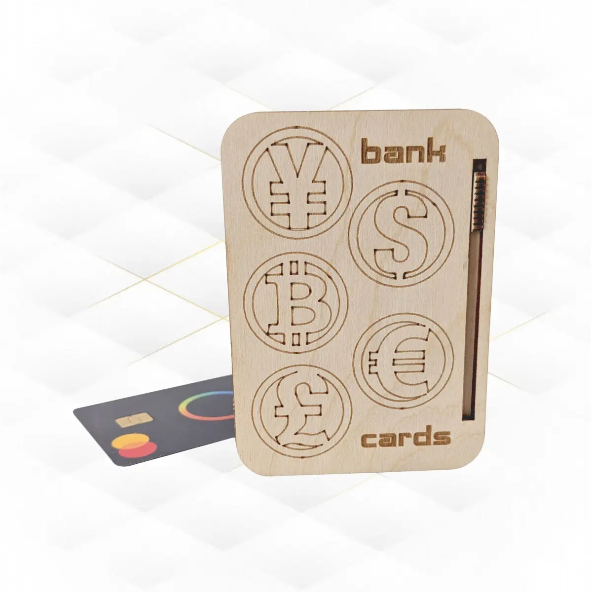 In the photo, the Gift Case is made of quality 3mm thick plywood.Product dimensions:Height - 98 mm (3.9 inches). Width - 69 mm (2.7 inches). Length - 12 mm (0.5 inch).