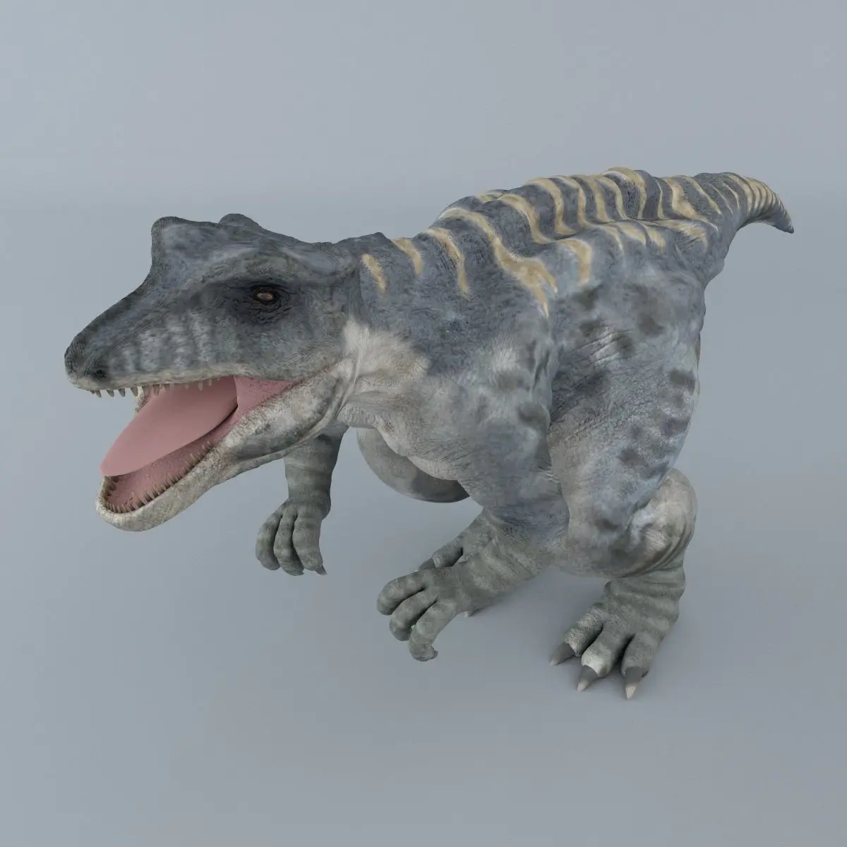 High Detailed Realistic Giganotosaurus, completely UV mapped, Textured and smooth able, made with Max 2009, sculpted in Z Brush ,Rendered with V-Ray,no Plugins used or needed.Can be use for games, advertising, broadcast.