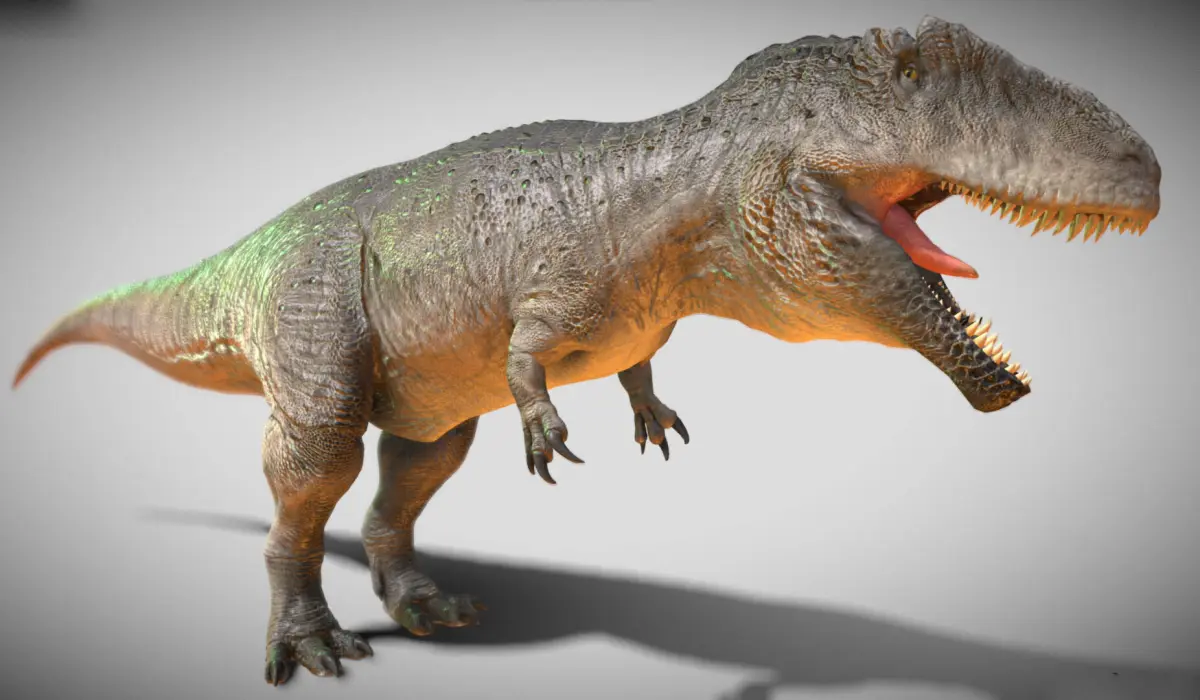 Giganotosaurus was one of the largest theropods to ever walk the Earth, living during the Late Cretaceous period around 98 million years ago in what is now Argentina. Reaching up to 43 feet in length and weighing nearly 8 tons, this massive predator was larger than Tyrannosaurus rex, though it had a more slender build built for speed. Its serrated teeth and powerful jaws made it an efficient hunter, likely preying on large herbivores like Argentinosaurus. Unlike T. rex, Giganotosaurus had a longer skull and three-fingered hands, suggesting a different hunting strategy. As one of the top predators of its time, this fearsome carnivore ruled the South American landscape before the rise of even larger titans.
