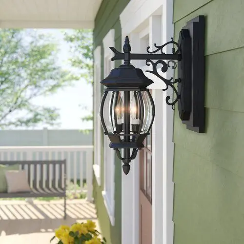 - A traditional design gets a dash of French flair with this, sure to collect compliments in any outdoor arrangement. Rated for wet locations, this rust-resistant fixture is crafted from cast aluminum with an outstretched arm adorned with scrolling accents and a decorative finial for plenty of classic character.