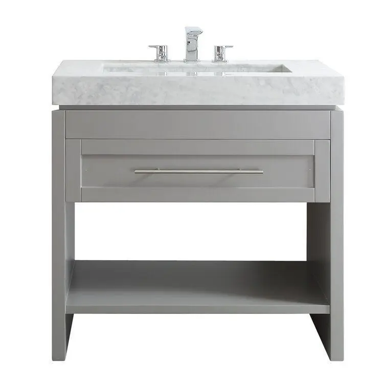 - A central fixture in any master or guest bathroom, the vanity is the spot for everything from brushing your teeth to stashing your bathroom essentials. To round out a remodel with a piece that lets you do it all, like this 36'' single vanity. Crafted from a solid oak base in a gray finish, this vanity features a Carrara marble surface and stone integrated sink.