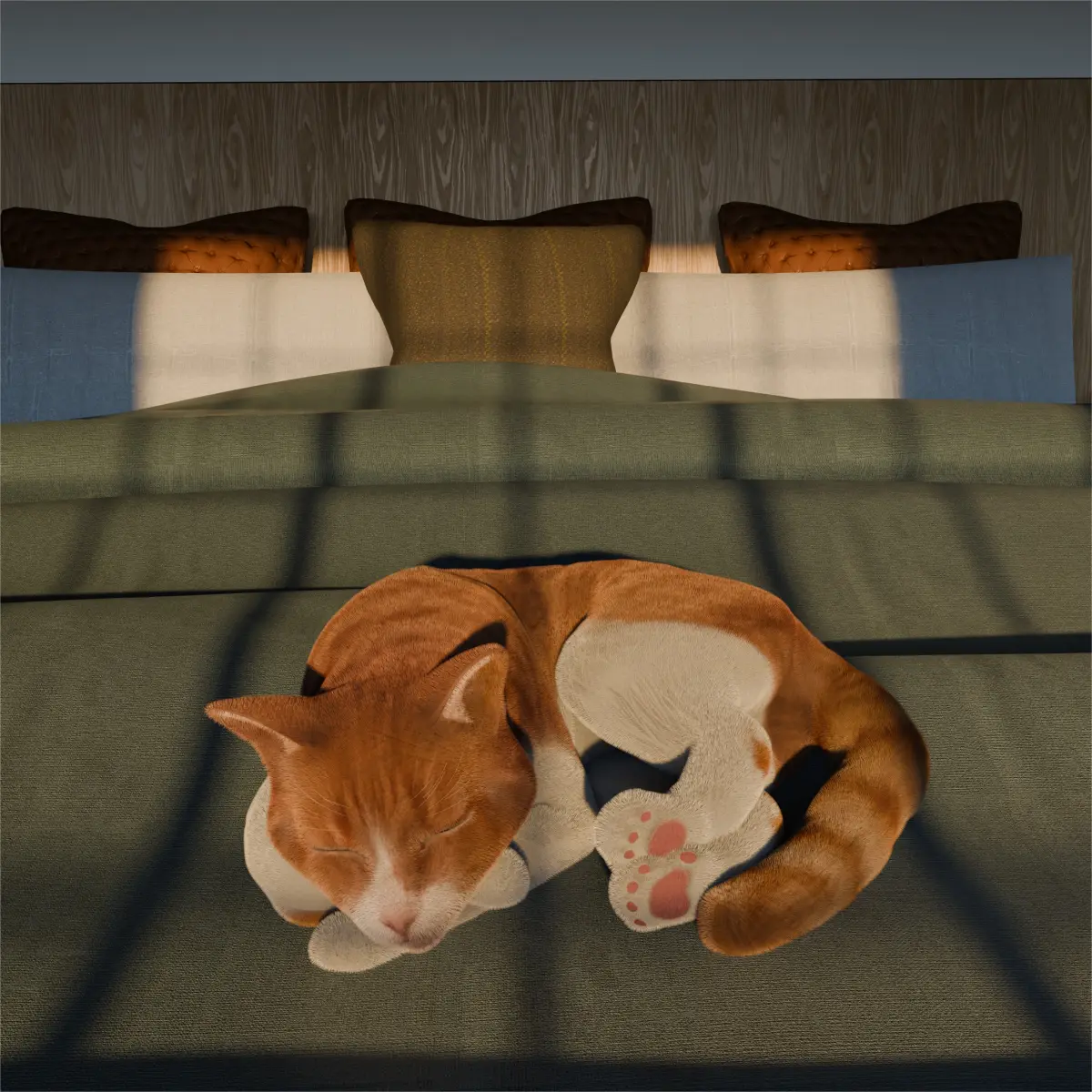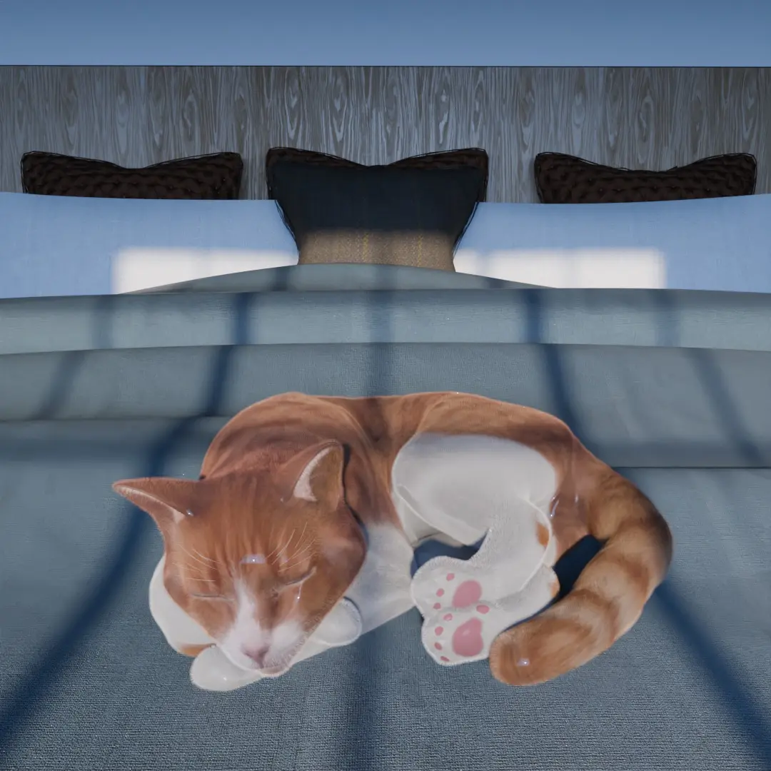 Ginger cat in a bed Low-poly 3D model