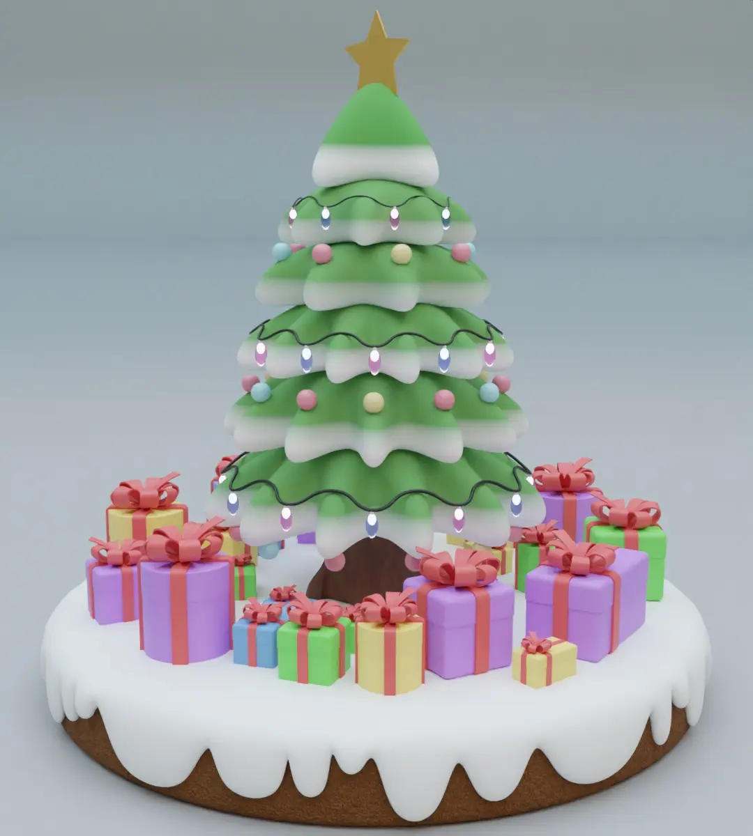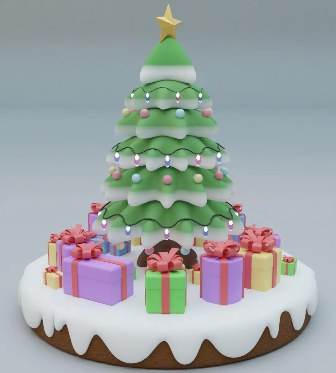 I am glad to present you a 3D model of a festive gingerbread tree for the holiday of Christmas, the model itself is a 3D model of gingerbread in the form of a tree, consists of a platform on which there is snow, festive boxes and a tree with decorations, garland and a star. Festive boxes have three shapes: cylinder, cube and rectangle. You can use the model for decorations, and it is also great for Christmas. In addition, the model is also suitable for your projects, games, editing, animation, videos, games, compositions, advertising, videos, etc.